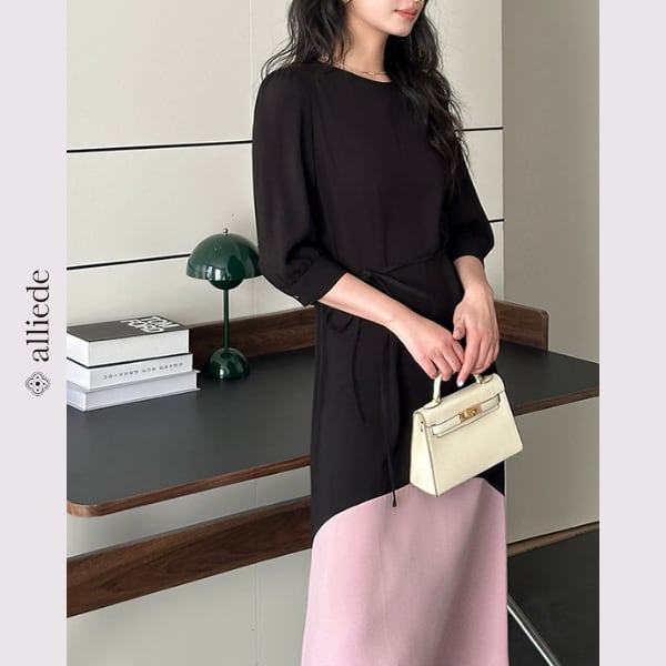 流れるようなバイカラーデザインが魅力のワンピース。ウエストリボンでシルエットを調整でき、上品さと抜け感を兼ね備えた一枚。 【サイズ】 S /着丈 117cm /バスト 86cm /ウエスト 82cm /肩幅 78cm /袖丈 41cm M /着丈 118cm /バスト 90cm /ウエスト 86cm /肩幅 79cm /袖丈 42cm L /着丈 119cm /バスト 94cm /ウエスト 90cm /肩幅 80cm /袖丈 43cm ※1〜3cmの誤差が生じる場合がございます 【素材】 ポリエステル 【カラー】 ブラック×ピンク 【お届けについて】 当ショップはお客様の商品を1点1点検品・梱包をした後、海外からの直接発送となります。 そのため発送までにご決済から3週間前後のお時間を頂いております。 お時間にゆとりを持ってご購入頂くことをおすすめいたします。 ▫️注意事項 ・タイミングによっては商品在庫切れにより注文キャンセルとさせていただく恐れもございますので、予めご了承くださいませ。 ・こちらは輸入品となります。日本製とは検品基準が異なる為、新品未使用品でもごくわずかな汚れやほつれがある場合もございます。 ・仕入れ工場を変えることがあるため、記載サイズと若干異なる場合がございます。 ・商品の色味は、お手持ちのスマートフォンの画面によって実物と若干異なる場合がございます。 ・イメージ違いやサイズ交換等、お客さまご都合による交換、返品は対応出来かねます。 ———————————— ご購入前にこちらをお読みください →https://www.alliede.shop/about ————————————