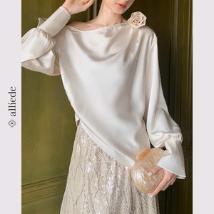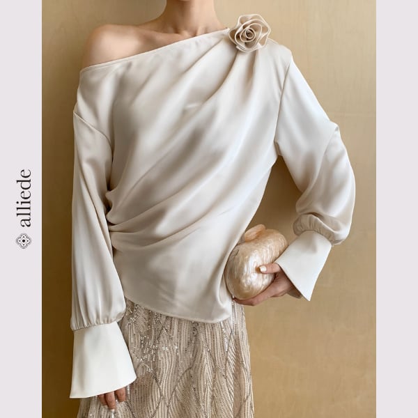 ワンショルダーの華やかなブラウス。立体的なフラワーモチーフがアクセントに。光沢感のある生地とドレープが上品な印象を演出します。特別な日のスタイリングにおすすめ。 【サイズ】 S /着丈 65cm /バスト 93cm /ウエスト 81cm /肩幅 50.5cm /袖丈 58cm M /着丈 66.5cm /バスト 97cm /ウエスト 85cm /肩幅 51.5cm /袖丈 59cm L /着丈 68cm /バスト 101cm /ウエスト 89cm /肩幅 52.5cm /袖丈 60cm ※1〜3cmの誤差が生じる場合がございます 【素材】 ポリエステル 【カラー】 アイボリー・ブラック 【お届けについて】 当ショップはお客様の商品を1点1点検品・梱包をした後、海外からの直接発送となります。 そのため発送までにご決済から3週間前後のお時間を頂いております。 お時間にゆとりを持ってご購入頂くことをおすすめいたします。 ▫️注意事項 ・タイミングによっては商品在庫切れにより注文キャンセルとさせていただく恐れもございますので、予めご了承くださいませ。 ・こちらは輸入品となります。日本製とは検品基準が異なる為、新品未使用品でもごくわずかな汚れやほつれがある場合もございます。 ・仕入れ工場を変えることがあるため、記載サイズと若干異なる場合がございます。 ・商品の色味は、お手持ちのスマートフォンの画面によって実物と若干異なる場合がございます。 ・イメージ違いやサイズ交換等、お客さまご都合による交換、返品は対応出来かねます。 ———————————— ご購入前にこちらをお読みください →https://www.alliede.shop/about ————————————