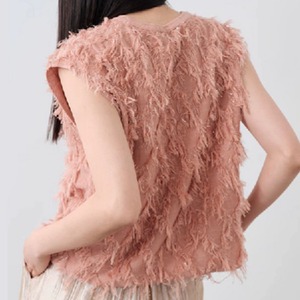 立体的なフリンジデザインが目を引くノースリーブトップス。動くたびに揺れる表情が魅力で、一枚でコーデを華やかに仕上げます。カジュアルにもきれいめにもマッチ。 【サイズ】 M /着丈 55cm /バスト 100cm /肩幅 45cm L /着丈 56cm /バスト 104cm /肩幅 46cm ※1〜3cmの誤差が生じる場合がございます 【素材】 ポリエステル 【カラー】 ピンク・ベージュ 【お届けについて】 当ショップはお客様の商品を1点1点検品・梱包をした後、海外からの直接発送となります。 そのため発送までにご決済から3週間前後のお時間を頂いております。 お時間にゆとりを持ってご購入頂くことをおすすめいたします。 ▫️注意事項 ・タイミングによっては商品在庫切れにより注文キャンセルとさせていただく恐れもございますので、予めご了承くださいませ。 ・こちらは輸入品となります。日本製とは検品基準が異なる為、新品未使用品でもごくわずかな汚れやほつれがある場合もございます。 ・仕入れ工場を変えることがあるため、記載サイズと若干異なる場合がございます。 ・商品の色味は、お手持ちのスマートフォンの画面によって実物と若干異なる場合がございます。 ・イメージ違いやサイズ交換等、お客さまご都合による交換、返品は対応出来かねます。 ———————————— ご購入前にこちらをお読みください →https://www.alliede.shop/about ————————————