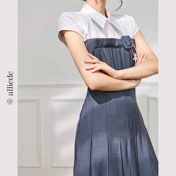 シャツ×フレアワンピースのコンビデザインが目を引く1枚。ハイウエスト切替とタック入りの揺れ感で、シンプルながらも洗練された印象に。 【サイズ】 S /着丈 138cm /バスト 86cm /ウエスト 67cm /肩幅 41cm /袖丈 7.7cm M /着丈 140cm /バスト 90cm /ウエスト 71cm /肩幅 42cm /袖丈 8cm L /着丈 140cm /バスト 94cm /ウエスト 75cm /肩幅 43cm /袖丈 8.3cm XL /着丈 140cm /バスト 99cm /ウエスト 80cm /肩幅 44cm /袖丈 8.6cm ※1〜3cmの誤差が生じる場合がございます 【素材】 ポリエステル・その他 【カラー】 グレー×ホワイト 【お届けについて】 当ショップはお客様の商品を1点1点検品・梱包をした後、海外からの直接発送となります。 そのため発送までにご決済から3週間前後のお時間を頂いております。 お時間にゆとりを持ってご購入頂くことをおすすめいたします。 ▫️注意事項 ・タイミングによっては商品在庫切れにより注文キャンセルとさせていただく恐れもございますので、予めご了承くださいませ。 ・こちらは輸入品となります。日本製とは検品基準が異なる為、新品未使用品でもごくわずかな汚れやほつれがある場合もございます。 ・仕入れ工場を変えることがあるため、記載サイズと若干異なる場合がございます。 ・商品の色味は、お手持ちのスマートフォンの画面によって実物と若干異なる場合がございます。 ・イメージ違いやサイズ交換等、お客さまご都合による交換、返品は対応出来かねます。 ———————————— ご購入前にこちらをお読みください →https://www.alliede.shop/about ————————————