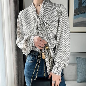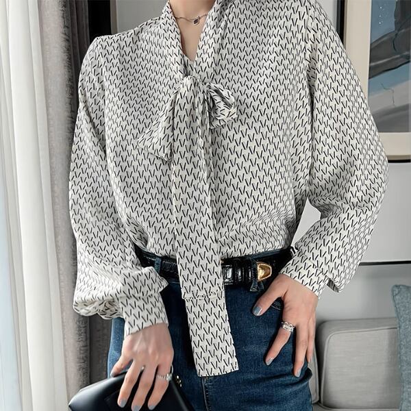 小さなV字柄を散りばめたリボンタイ付きブラウス。デニムにもスカートにも合わせやすく、きれいめからカジュアルまで幅広く活躍する一枚です。 【サイズ】 S /着丈 63cm /バスト 104cm /肩幅 38cm /袖丈 64cm M /着丈 64cm /バスト 108cm /肩幅 39cm /袖丈 65cm L /着丈 65cm /バスト 112cm /肩幅 40cm /袖丈 66cm ※1〜3cmの誤差が生じる場合がございます 【素材】 ポリエステル 【カラー】 ワンカラー 【お届けについて】 当ショップはお客様の商品を1点1点検品・梱包をした後、海外からの直接発送となります。 そのため発送までにご決済から3週間前後のお時間を頂いております。 お時間にゆとりを持ってご購入頂くことをおすすめいたします。 ◼️注意事項 ・タイミングによっては商品在庫切れにより注文キャンセルとさせていただく恐れもございますので、予めご了承くださいませ。 ・こちらは輸入品となります。日本製とは検品基準が異なる為、新品未使用品でもごくわずかな汚れやほつれがある場合もございます。 ・仕入れ工場を変えることがあるため、記載サイズと若干異なる場合がございます。 ・商品の色味は、お手持ちのスマートフォンの画面によって実物と若干異なる場合がございます。 ・イメージ違いやサイズ交換等、お客さまご都合による交換、返品は対応出来かねます。 ———————————— ご購入前にこちらをお読みください →https://www.alliede.shop/about ————————————