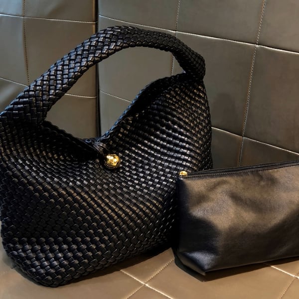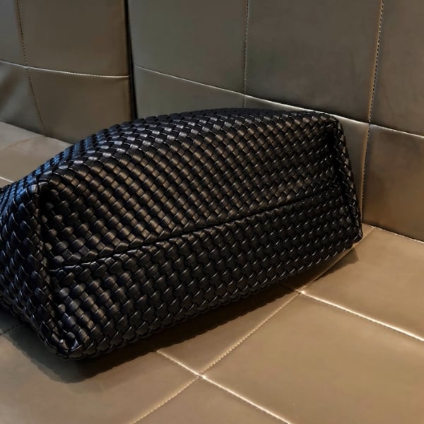 しなやかなレザーを丁寧に編み上げたウーブンデザイン。A4サイズもすっきり収まる収納力で、デイリーからオフィスまで幅広く活躍します。