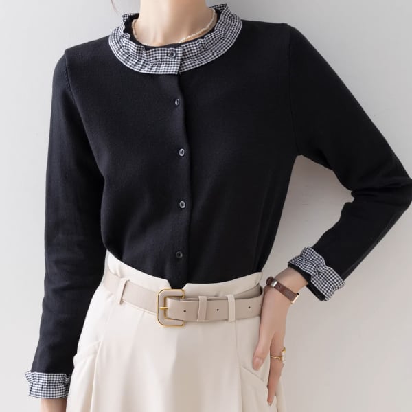 襟元と袖口にチェック柄をあしらった上品カーディガン。シンプルな中にさりげない華やかさをプラスし、コーディネートを引き立てます。 【サイズ】 S /着丈 61cm /バスト 98cm /肩幅 37cm /袖丈 59cm M /着丈 62cm /バスト 102cm /肩幅 38cm /袖丈 60cm L /着丈 63cm /バスト 106cm /肩幅 39cm /袖丈 61cm XL /着丈 64cm /バスト 110cm /肩幅 40cm /袖丈 62cm ※1〜3cmの誤差が生じる場合がございます 【素材】 ポリエステル・ビスコース 【カラー】 ブラック 【お届けについて】 当ショップはお客様の商品を1点1点検品・梱包をした後、海外からの直接発送となります。 そのため発送までにご決済から3週間前後のお時間を頂いております。 お時間にゆとりを持ってご購入頂くことをおすすめいたします。 ◼️注意事項 ・タイミングによっては商品在庫切れにより注文キャンセルとさせていただく恐れもございますので、予めご了承くださいませ。 ・こちらは輸入品となります。日本製とは検品基準が異なる為、新品未使用品でもごくわずかな汚れやほつれがある場合もございます。 ・仕入れ工場を変えることがあるため、記載サイズと若干異なる場合がございます。 ・商品の色味は、お手持ちのスマートフォンの画面によって実物と若干異なる場合がございます。 ・イメージ違いやサイズ交換等、お客さまご都合による交換、返品は対応出来かねます。 ———————————— ご購入前にこちらをお読みください →https://www.alliede.shop/about ————————————
