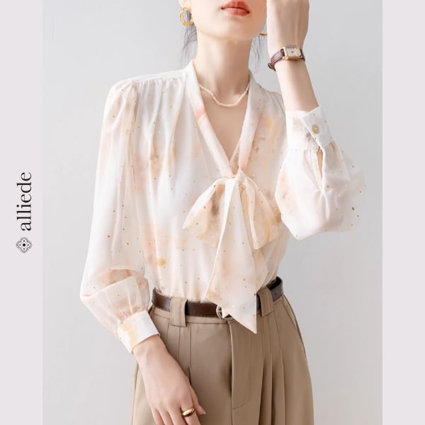 軽やかな透け感と繊細なドット、淡い花柄をあしらったブラウス。首元のリボンタイが華やかさをプラスし、オンにもオフにも活躍する上品なデザインです。 【サイズ】 S /着丈 60cm /バスト 92cm /肩幅 39cm /袖丈 56cm M /着丈 61cm /バスト 96cm /肩幅 40cm /袖丈 57cm L /着丈 62cm /バスト 100cm /肩幅 41cm /袖丈 58cm XL /着丈 63cm /バスト 104cm /肩幅 42cm /袖丈 59cm 2XL /着丈 64cm /バスト 108cm /肩幅 43cm /袖丈 60cm ※1〜3cmの誤差が生じる場合がございます 【素材】 ポリエステル・スパンデックス 【カラー】 オレンジ 【お届けについて】 当ショップはお客様の商品を1点1点検品・梱包をした後、海外からの直接発送となります。 そのため発送までにご決済から3週間前後のお時間を頂いております。 お時間にゆとりを持ってご購入頂くことをおすすめいたします。 ◼️注意事項 ・タイミングによっては商品在庫切れにより注文キャンセルとさせていただく恐れもございますので、予めご了承くださいませ。 ・こちらは輸入品となります。日本製とは検品基準が異なる為、新品未使用品でもごくわずかな汚れやほつれがある場合もございます。 ・仕入れ工場を変えることがあるため、記載サイズと若干異なる場合がございます。 ・商品の色味は、お手持ちのスマートフォンの画面によって実物と若干異なる場合がございます。 ・イメージ違いやサイズ交換等、お客さまご都合による交換、返品は対応出来かねます。 ———————————— ご購入前にこちらをお読みください →https://www.alliede.shop/about ————————————