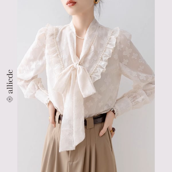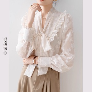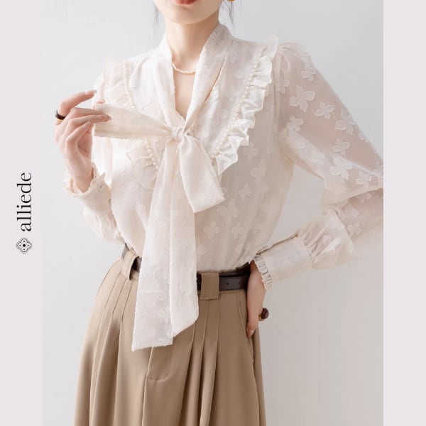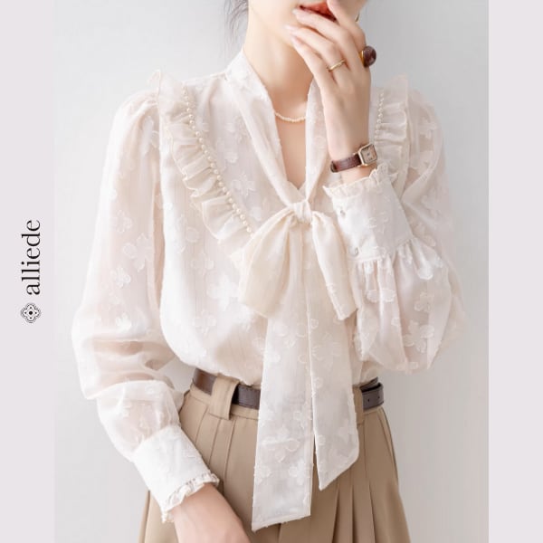 バタフライ柄とフリル使いが華やかなシフォンブラウス。リボンタイが顔周りを上品に演出し、ジャケットインにも映える一枚。 【サイズ】 S /着丈 60cm /バスト 92cm /肩幅 39cm /袖丈 56cm M /着丈 61cm /バスト 96cm /肩幅 40cm /袖丈 57cm L /着丈 62cm /バスト 100cm /肩幅 41cm /袖丈 58cm XL /着丈 63cm /バスト 104cm /肩幅 42cm /袖丈 59cm 2XL /着丈 64cm /バスト 108cm /肩幅 43cm /袖丈 60cm ※1〜3cmの誤差が生じる場合がございます 【素材】 ポリエステル・スパンデックス 【カラー】 オフホワイト 【お届けについて】 当ショップはお客様の商品を1点1点検品・梱包をした後、海外からの直接発送となります。 そのため発送までにご決済から3週間前後のお時間を頂いております。 お時間にゆとりを持ってご購入頂くことをおすすめいたします。 ◼️注意事項 ・タイミングによっては商品在庫切れにより注文キャンセルとさせていただく恐れもございますので、予めご了承くださいませ。 ・こちらは輸入品となります。日本製とは検品基準が異なる為、新品未使用品でもごくわずかな汚れやほつれがある場合もございます。 ・仕入れ工場を変えることがあるため、記載サイズと若干異なる場合がございます。 ・商品の色味は、お手持ちのスマートフォンの画面によって実物と若干異なる場合がございます。 ・イメージ違いやサイズ交換等、お客さまご都合による交換、返品は対応出来かねます。 ———————————— ご購入前にこちらをお読みください →https://www.alliede.shop/about ————————————
