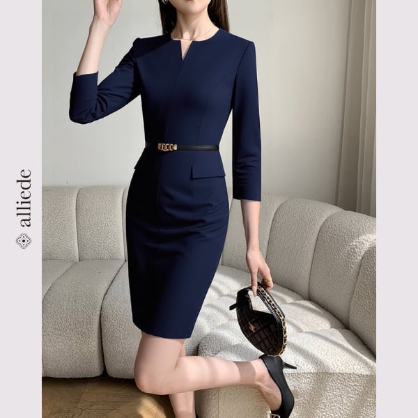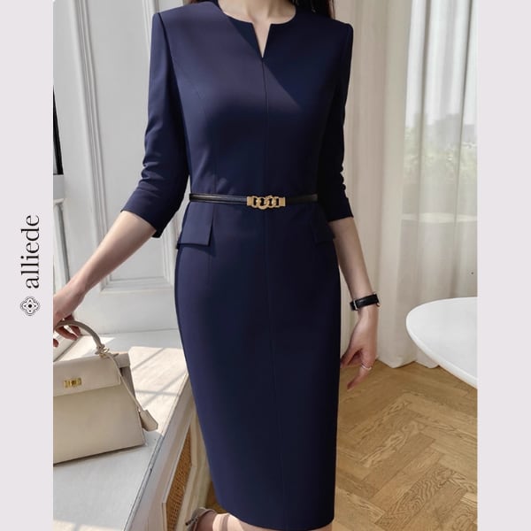 キーネックVラインがすっきりとした印象を演出するタイトワンピース。シンプルながら洗練されたシルエットで、ビジネスから特別なお出かけまで幅広く活躍します。 【サイズ】 S /着丈 93cm /バスト 86cm /ウエスト 69cm /ヒップ 90cm /肩幅 37cm M /着丈 94.5cm /バスト 90cm /ウエスト 73cm /ヒップ 94cm /肩幅 38cm L /着丈 96cm /バスト 94cm /ウエスト 77cm /ヒップ 98cm /肩幅 39cm XL /着丈 97.5cm /バスト 98cm /ウエスト 81cm /ヒップ 102cm /肩幅 40cm 2XL /着丈 99cm /バスト 102cm /ウエスト 85cm /ヒップ 106cm /肩幅 41cm 3XL /着丈 100.5cm /バスト 106cm /ウエスト 89cm /ヒップ 110cm /肩幅 42cm ※1〜3cmの誤差が生じる場合がございます 【素材】 ポリエステル・スパンデックス 【カラー】 ネイビーブルー 【お届けについて】 当ショップはお客様の商品を1点1点検品・梱包をした後、海外からの直接発送となります。 そのため発送までにご決済から3週間前後のお時間を頂いております。 お時間にゆとりを持ってご購入頂くことをおすすめいたします。 ◼️注意事項 ・タイミングによっては商品在庫切れにより注文キャンセルとさせていただく恐れもございますので、予めご了承くださいませ。 ・こちらは輸入品となります。日本製とは検品基準が異なる為、新品未使用品でもごくわずかな汚れやほつれがある場合もございます。 ・仕入れ工場を変えることがあるため、記載サイズと若干異なる場合がございます。 ・商品の色味は、お手持ちのスマートフォンの画面によって実物と若干異なる場合がございます。 ・イメージ違いやサイズ交換等、お客さまご都合による交換、返品は対応出来かねます。 ———————————— ご購入前にこちらをお読みください →https://www.alliede.shop/about ————————————