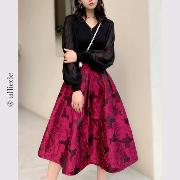 立体感ある花柄ジャガードが存在感を放つミディ丈スカート。ハリのある生地がシルエットを美しく引き立て、華やかな装いを演出します。 【サイズ】 S /着丈 68cm /ウエスト 64cm M /着丈 68cm /ウエスト 68cm L /着丈 69cm /ウエスト 72cm XL /着丈 69cm /ウエスト 76cm 2XL /着丈 70cm /ウエスト 80cm ※1〜3cmの誤差が生じる場合がございます 【素材】 ポリエステル 【カラー】 ローズレッド 【お届けについて】 当ショップはお客様の商品を1点1点検品・梱包をした後、海外からの直接発送となります。 そのため発送までにご決済から3週間前後のお時間を頂いております。 お時間にゆとりを持ってご購入頂くことをおすすめいたします。 ◼️注意事項 ・タイミングによっては商品在庫切れにより注文キャンセルとさせていただく恐れもございますので、予めご了承くださいませ。 ・こちらは輸入品となります。日本製とは検品基準が異なる為、新品未使用品でもごくわずかな汚れやほつれがある場合もございます。 ・仕入れ工場を変えることがあるため、記載サイズと若干異なる場合がございます。 ・商品の色味は、お手持ちのスマートフォンの画面によって実物と若干異なる場合がございます。 ・イメージ違いやサイズ交換等、お客さまご都合による交換、返品は対応出来かねます。 ———————————— ご購入前にこちらをお読みください →https://www.alliede.shop/about ————————————