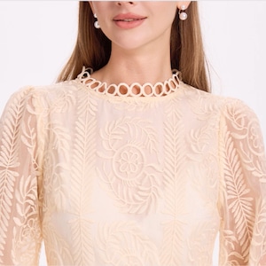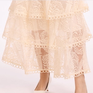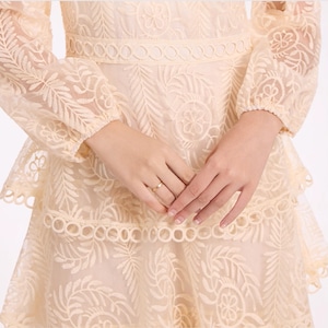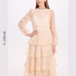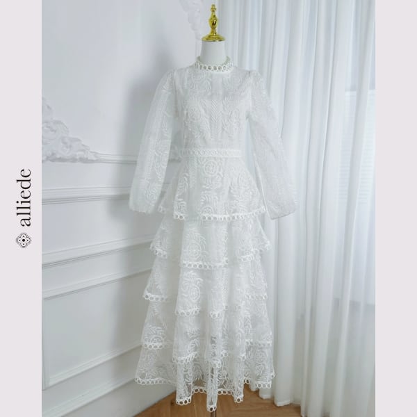 繊細なサークルレースとふんわり重なるティアードシルエットが視線を惹きつける一枚。華やかな存在感で特別なシーンにも映える上品ワンピースです。 【サイズ】 M /着丈 138cm /バスト 90cm /ウエスト 72cm /肩幅 33cm /袖丈 60cm L /着丈 139cm /バスト 94cm /ウエスト 76cm /肩幅 34cm /袖丈 61cm XL /着丈 140cm /バスト 98cm /ウエスト 80cm /肩幅 35cm /袖丈 62cm 2XL /着丈 141cm /バスト 102cm /ウエスト 84cm /肩幅 36cm /袖丈 63cm 3XL /着丈 142cm /バスト 106cm /ウエスト 88cm /肩幅 37cm /袖丈 64cm ※1〜3cmの誤差が生じる場合がございます 【素材】 ポリエステル 【カラー】 アイボリー・ホワイト・ブラック・パープル・ピンク 【お届けについて】 当ショップはお客様の商品を1点1点検品・梱包をした後、海外からの直接発送となります。 そのため発送までにご決済から3週間前後のお時間を頂いております。 お時間にゆとりを持ってご購入頂くことをおすすめいたします。 ◼️注意事項 ・タイミングによっては商品在庫切れにより注文キャンセルとさせていただく恐れもございますので、予めご了承くださいませ。 ・こちらは輸入品となります。日本製とは検品基準が異なる為、新品未使用品でもごくわずかな汚れやほつれがある場合もございます。 ・仕入れ工場を変えることがあるため、記載サイズと若干異なる場合がございます。 ・商品の色味は、お手持ちのスマートフォンの画面によって実物と若干異なる場合がございます。 ・イメージ違いやサイズ交換等、お客さまご都合による交換、返品は対応出来かねます。 ———————————— ご購入前にこちらをお読みください →https://www.alliede.shop/about ————————————