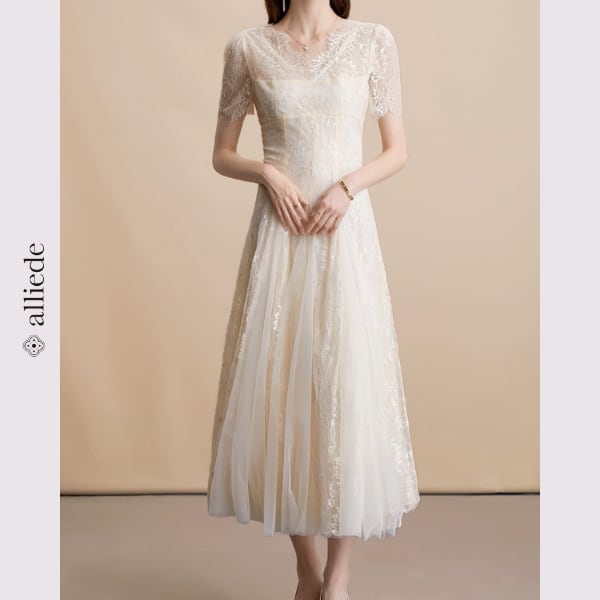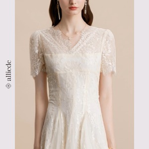 繊細なレースとチュールを重ねた華やかなワンピース。すっきりとしたVネックとウエストシェイプで女性らしいシルエットを演出。 【サイズ】 S /着丈 127cm /バスト 82cm /ウエスト 66cm /肩幅 35cm /袖丈 22.5cm M /着丈 128cm /バスト 86cm /ウエスト 70cm /肩幅 36cm /袖丈 23cm L /着丈 129cm /バスト 90cm /ウエスト 74cm /肩幅 37cm /袖丈 23.5cm XL /着丈 130cm /バスト 94cm /ウエスト 78cm /肩幅 38cm /袖丈 24cm 2XL /着丈 131cm /バスト 98cm /ウエスト 82cm /肩幅 39cm /袖丈 24.5cm ※1〜3cmの誤差が生じる場合がございます 【素材】 ポリエステル 【カラー】 オフホワイト 【お届けについて】 当ショップはお客様の商品を1点1点検品・梱包をした後、海外からの直接発送となります。 そのため発送までにご決済から3週間前後のお時間を頂いております。 お時間にゆとりを持ってご購入頂くことをおすすめいたします。 ◼️注意事項 ・タイミングによっては商品在庫切れにより注文キャンセルとさせていただく恐れもございますので、予めご了承くださいませ。 ・こちらは輸入品となります。日本製とは検品基準が異なる為、新品未使用品でもごくわずかな汚れやほつれがある場合もございます。 ・仕入れ工場を変えることがあるため、記載サイズと若干異なる場合がございます。 ・商品の色味は、お手持ちのスマートフォンの画面によって実物と若干異なる場合がございます。 ・イメージ違いやサイズ交換等、お客さまご都合による交換、返品は対応出来かねます。 ———————————— ご購入前にこちらをお読みください →https://www.alliede.shop/about ————————————
