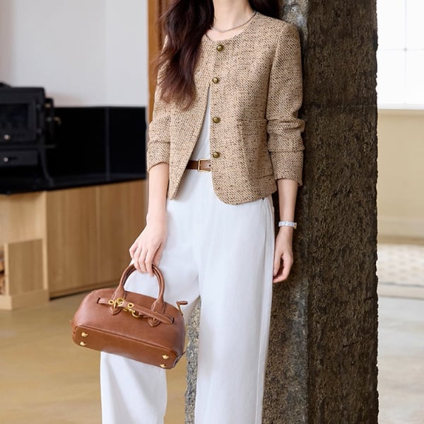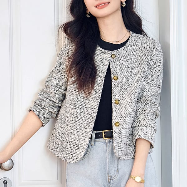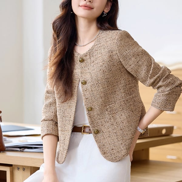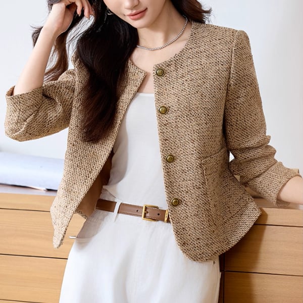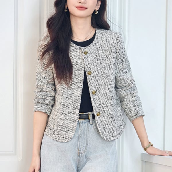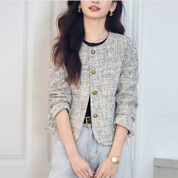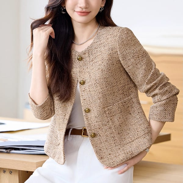 シンプルなノーカラーデザインにゴールドボタンが映えるジャケット。上品な丈感でパンツにもスカートにも合わせやすく、通勤からお出かけまで幅広く活躍します。 【サイズ】 S /着丈 53cm /バスト 90cm /肩幅 38cm /袖丈 56cm M /着丈 54cm /バスト 94cm /肩幅 39cm /袖丈 57cm L /着丈 55cm /バスト 98cm /肩幅 40cm /袖丈 58cm XL /着丈 56cm /バスト 102cm /肩幅 41cm /袖丈 59cm 2XL /着丈 57cm /バスト 110cm /肩幅 42cm /袖丈 60cm 3XL /着丈 58cm /バスト 110cm /肩幅 43cm /袖丈 61cm ※1〜3cmの誤差が生じる場合がございます 【素材】 ポリエステル 【カラー】 グレー・ライトブラウン 【お届けについて】 当ショップはお客様の商品を1点1点検品・梱包をした後、海外からの直接発送となります。 そのため発送までにご決済から3週間前後のお時間を頂いております。 お時間にゆとりを持ってご購入頂くことをおすすめいたします。 ◼️注意事項 ・タイミングによっては商品在庫切れにより注文キャンセルとさせていただく恐れもございますので、予めご了承くださいませ。 ・こちらは輸入品となります。日本製とは検品基準が異なる為、新品未使用品でもごくわずかな汚れやほつれがある場合もございます。 ・仕入れ工場を変えることがあるため、記載サイズと若干異なる場合がございます。 ・商品の色味は、お手持ちのスマートフォンの画面によって実物と若干異なる場合がございます。 ・イメージ違いやサイズ交換等、お客さまご都合による交換、返品は対応出来かねます。 ———————————— ご購入前にこちらをお読みください →https://www.alliede.shop/about ————————————