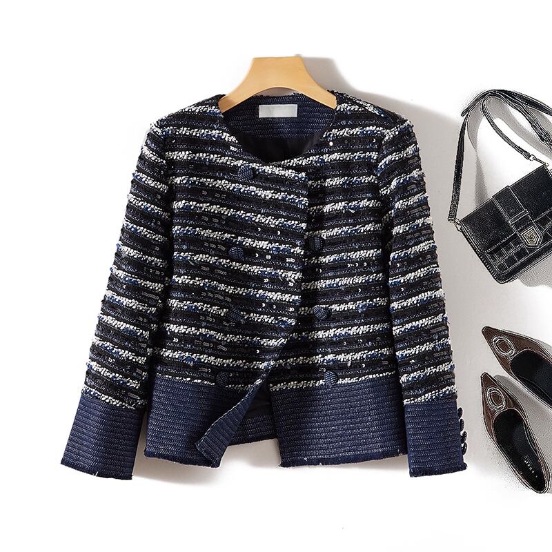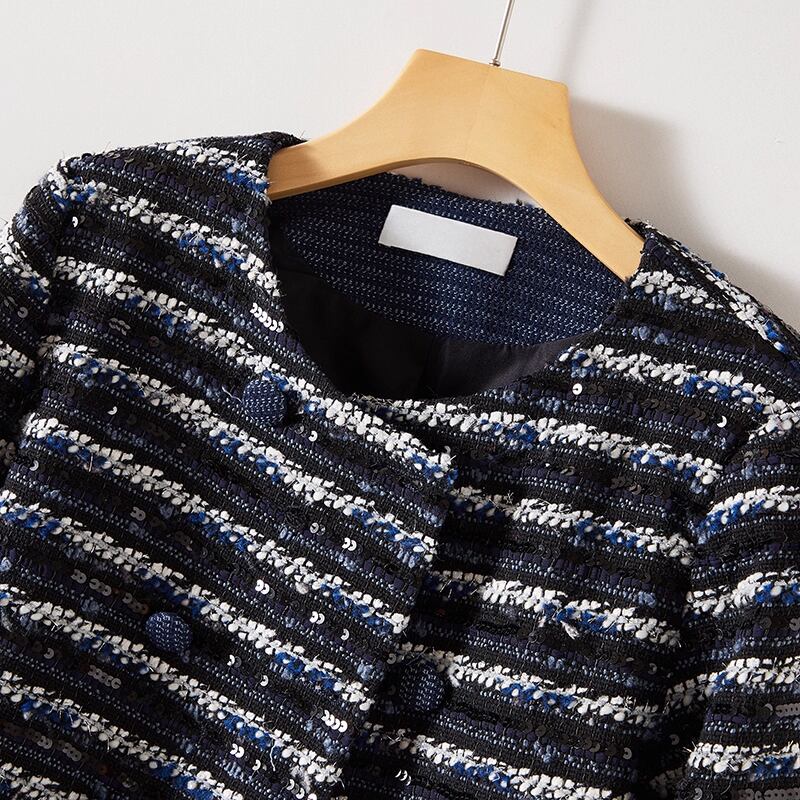 ネイビーを基調に、ホワイトとブルーの糸を織り交ぜた上品なジャケット。程よい厚みと立体感のある生地が魅力で、カジュアルにもきれいめにもマッチします。
