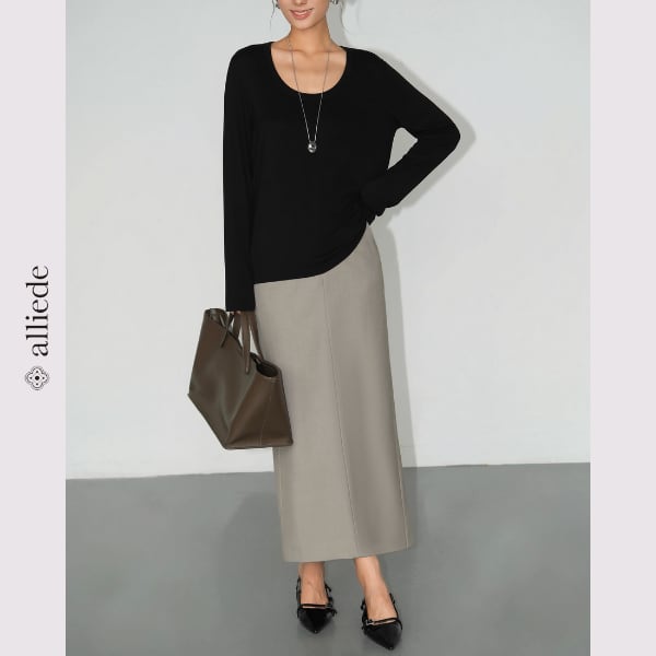 スタイルアップ効果のあるIラインシルエットのロングスカート。後ろスリットで動きやすさもあり、きれいめシャツやジャケットと好相性。通勤からお出かけまで幅広く着回せる一枚です。 【サイズ】 S /着丈 88cm /ウエスト 65cm /ヒップ 89cm M /着丈 89cm /ウエスト 69cm /ヒップ 93cm L /着丈 90cm /ウエスト 73cm /ヒップ 97cm ※1〜3cmの誤差が生じる場合がございます 【素材】 ポリエステル・ビスコース 【カラー】 ブラック・オートミール 【お届けについて】 当ショップはお客様の商品を1点1点検品・梱包をした後、海外からの直接発送となります。 そのため発送までにご決済から3週間前後のお時間を頂いております。 お時間にゆとりを持ってご購入頂くことをおすすめいたします。 ◼️注意事項 ・タイミングによっては商品在庫切れにより注文キャンセルとさせていただく恐れもございますので、予めご了承くださいませ。 ・こちらは輸入品となります。日本製とは検品基準が異なる為、新品未使用品でもごくわずかな汚れやほつれがある場合もございます。 ・仕入れ工場を変えることがあるため、記載サイズと若干異なる場合がございます。 ・商品の色味は、お手持ちのスマートフォンの画面によって実物と若干異なる場合がございます。 ・イメージ違いやサイズ交換等、お客さまご都合による交換、返品は対応出来かねます。 ———————————— ご購入前にこちらをお読みください →https://www.alliede.shop/about ————————————