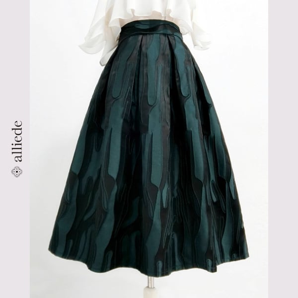 立体感あるジャカード織りが目を惹くフレアスカート。動くたびに奥行きを感じる陰影が美しく、シンプルなトップスとも相性抜群。 【サイズ】 S /着丈 68cm /ウエスト 64cm M /着丈 68cm /ウエスト 68cm L /着丈 69cm /ウエスト 72cm XL /着丈 69cm /ウエスト 76cm 2XL /着丈 70cm /ウエスト 80cm ※1〜3cmの誤差が生じる場合がございます 【素材】 ポリエステル 【カラー】 ダークグリーン 【お届けについて】 当ショップはお客様の商品を1点1点検品・梱包をした後、海外からの直接発送となります。 そのため発送までにご決済から3週間前後のお時間を頂いております。 お時間にゆとりを持ってご購入頂くことをおすすめいたします。 ◼️注意事項 ・タイミングによっては商品在庫切れにより注文キャンセルとさせていただく恐れもございますので、予めご了承くださいませ。 ・こちらは輸入品となります。日本製とは検品基準が異なる為、新品未使用品でもごくわずかな汚れやほつれがある場合もございます。 ・仕入れ工場を変えることがあるため、記載サイズと若干異なる場合がございます。 ・商品の色味は、お手持ちのスマートフォンの画面によって実物と若干異なる場合がございます。 ・イメージ違いやサイズ交換等、お客さまご都合による交換、返品は対応出来かねます。 ———————————— ご購入前にこちらをお読みください →https://www.alliede.shop/about ————————————