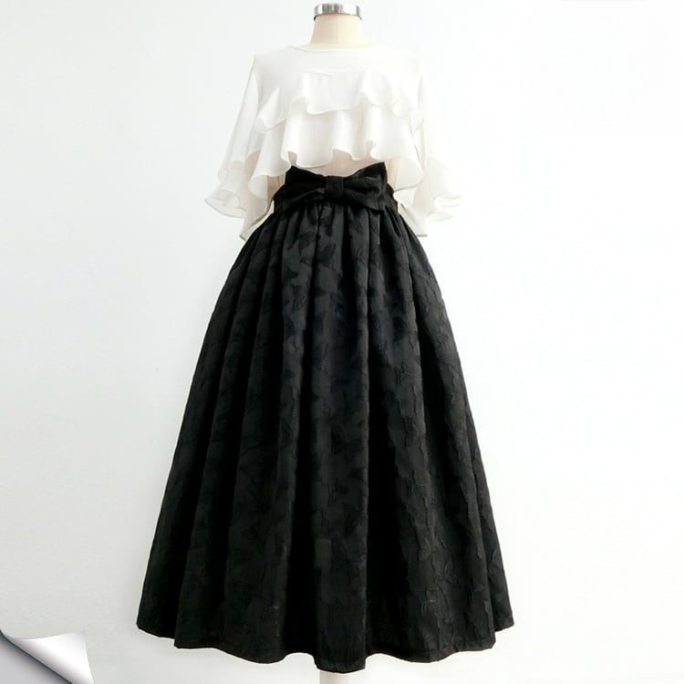 繊細なバタフライ柄のジャカードが華やかに映えるフレアスカート。立体感ある織り模様とウエストリボンが女性らしさを引き立て、特別な日にも日常にも上品に寄り添います。 【サイズ】 S /着丈 75cm /ウエスト 64cm M /着丈 75cm /ウエスト 68cm L /着丈 75cm /ウエスト 72cm XL /着丈 75cm /ウエスト 76cm 2XL /着丈 75cm /ウエスト 80cm ※1〜3cmの誤差が生じる場合がございます 【素材】 ポリエステル 【カラー】 ブラック 【お届けについて】 当ショップはお客様の商品を1点1点検品・梱包をした後、海外からの直接発送となります。 そのため発送までにご決済から3週間前後のお時間を頂いております。 お時間にゆとりを持ってご購入頂くことをおすすめいたします。 ◼️注意事項 ・タイミングによっては商品在庫切れにより注文キャンセルとさせていただく恐れもございますので、予めご了承くださいませ。 ・こちらは輸入品となります。日本製とは検品基準が異なる為、新品未使用品でもごくわずかな汚れやほつれがある場合もございます。 ・仕入れ工場を変えることがあるため、記載サイズと若干異なる場合がございます。 ・商品の色味は、お手持ちのスマートフォンの画面によって実物と若干異なる場合がございます。 ・イメージ違いやサイズ交換等、お客さまご都合による交換、返品は対応出来かねます。 ———————————— ご購入前にこちらをお読みください →https://www.alliede.shop/about ————————————