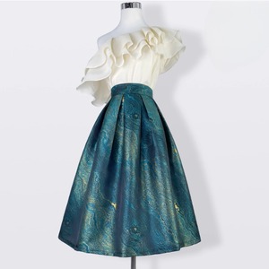 深みのあるグリーンにゴールドを織り込んだマーブル調ジャカードが印象的なフレアスカート。クラシカルな佇まいで、特別なシーンから日常のおしゃれまで華やかに引き立てます。 【サイズ】 S /着丈 70cm /ウエスト 64cm M /着丈 70cm /ウエスト 68cm L /着丈 70cm /ウエスト 72cm XL /着丈 70cm /ウエスト 76cm 2XL /着丈 70cm /ウエスト 80cm ※1〜3cmの誤差が生じる場合がございます 【素材】 ポリエステル 【カラー】 グリーン 【お届けについて】 当ショップはお客様の商品を1点1点検品・梱包をした後、海外からの直接発送となります。 そのため発送までにご決済から3週間前後のお時間を頂いております。 お時間にゆとりを持ってご購入頂くことをおすすめいたします。 ◼️注意事項 ・タイミングによっては商品在庫切れにより注文キャンセルとさせていただく恐れもございますので、予めご了承くださいませ。 ・こちらは輸入品となります。日本製とは検品基準が異なる為、新品未使用品でもごくわずかな汚れやほつれがある場合もございます。 ・仕入れ工場を変えることがあるため、記載サイズと若干異なる場合がございます。 ・商品の色味は、お手持ちのスマートフォンの画面によって実物と若干異なる場合がございます。 ・イメージ違いやサイズ交換等、お客さまご都合による交換、返品は対応出来かねます。 ———————————— ご購入前にこちらをお読みください →https://www.alliede.shop/about ————————————