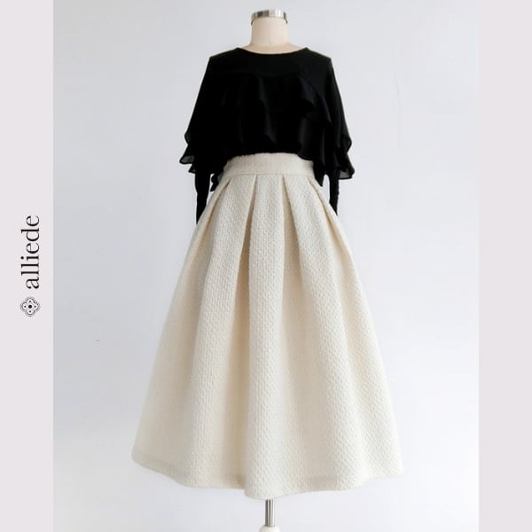 ツイード素材を使用したエレガントなプリーツスカート。柔らかなアイボリーカラーが女性らしさを引き立て、Aラインシルエットでスタイルアップ。 【サイズ】 S /着丈 68cm /ウエスト 64cm M /着丈 68cm /ウエスト 68cm L /着丈 69cm /ウエスト 72cm XL /着丈 69cm /ウエスト 76cm 2XL /着丈 70cm /ウエスト 80cm ※1〜3cmの誤差が生じる場合がございます 【素材】 ポリエステル 【カラー】 オフホワイト 【お届けについて】 当ショップはお客様の商品を1点1点検品・梱包をした後、海外からの直接発送となります。 そのため発送までにご決済から3週間前後のお時間を頂いております。 お時間にゆとりを持ってご購入頂くことをおすすめいたします。 ◼️注意事項 ・タイミングによっては商品在庫切れにより注文キャンセルとさせていただく恐れもございますので、予めご了承くださいませ。 ・こちらは輸入品となります。日本製とは検品基準が異なる為、新品未使用品でもごくわずかな汚れやほつれがある場合もございます。 ・仕入れ工場を変えることがあるため、記載サイズと若干異なる場合がございます。 ・商品の色味は、お手持ちのスマートフォンの画面によって実物と若干異なる場合がございます。 ・イメージ違いやサイズ交換等、お客さまご都合による交換、返品は対応出来かねます。 ———————————— ご購入前にこちらをお読みください →https://www.alliede.shop/about ————————————