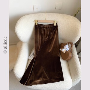 光沢感のあるベロア素材を使用したマーメイドスカート。裾に広がるフレアが動くたびに華やかさをプラス。ウエストゴムで快適な着心地とシルエットの美しさを両立。 【サイズ】 XS /着丈 73cm /ウエスト 58cm /ヒップ 78cm S /着丈 75cm /ウエスト 60cm /ヒップ 82cm M /着丈 77cm /ウエスト 64cm /ヒップ 86cm L /着丈 79cm /ウエスト 68cm /ヒップ 90cm ※1〜3cmの誤差が生じる場合がございます 【素材】 ポリエステル 【カラー】 ダークブラウン・ブラック 【お届けについて】 当ショップはお客様の商品を1点1点検品・梱包をした後、海外からの直接発送となります。 そのため発送までにご決済から3週間前後のお時間を頂いております。 お時間にゆとりを持ってご購入頂くことをおすすめいたします。 ◼️注意事項 ・タイミングによっては商品在庫切れにより注文キャンセルとさせていただく恐れもございますので、予めご了承くださいませ。 ・こちらは輸入品となります。日本製とは検品基準が異なる為、新品未使用品でもごくわずかな汚れやほつれがある場合もございます。 ・仕入れ工場を変えることがあるため、記載サイズと若干異なる場合がございます。 ・商品の色味は、お手持ちのスマートフォンの画面によって実物と若干異なる場合がございます。 ・イメージ違いやサイズ交換等、お客さまご都合による交換、返品は対応出来かねます。 ———————————— ご購入前にこちらをお読みください →https://www.alliede.shop/about ————————————