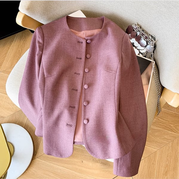すっきりとしたノーカラーデザインに、くるみボタンがさりげなく映えるジャケット。 シルエットに程よい立体感があり、通勤やお出かけシーンにも上品に寄り添います。 【サイズ】 S /着丈 52cm /バスト 88cm /肩幅 37cm /袖丈 57cm M /着丈 53cm /バスト 92cm /肩幅 38cm /袖丈 58cm L /着丈 54cm /バスト 96cm /肩幅 39cm /袖丈 59cm XL /着丈 55cm /バスト 100cm /肩幅 40cm /袖丈 60cm ※1〜3cmの誤差が生じる場合がございます 【素材】 レーヨン・ポリエステル・スパンデックス 【カラー】 パープル 【お届けについて】 当ショップはお客様の商品を1点1点検品・梱包をした後、海外からの直接発送となります。 そのため発送までにご決済から3週間前後のお時間を頂いております。 お時間にゆとりを持ってご購入頂くことをおすすめいたします。 ◼️注意事項 ・タイミングによっては商品在庫切れにより注文キャンセルとさせていただく恐れもございますので、予めご了承くださいませ。 ・こちらは輸入品となります。日本製とは検品基準が異なる為、新品未使用品でもごくわずかな汚れやほつれがある場合もございます。 ・仕入れ工場を変えることがあるため、記載サイズと若干異なる場合がございます。 ・商品の色味は、お手持ちのスマートフォンの画面によって実物と若干異なる場合がございます。 ・イメージ違いやサイズ交換等、お客さまご都合による交換、返品は対応出来かねます。 ———————————— ご購入前にこちらをお読みください →https://www.alliede.shop/about ————————————