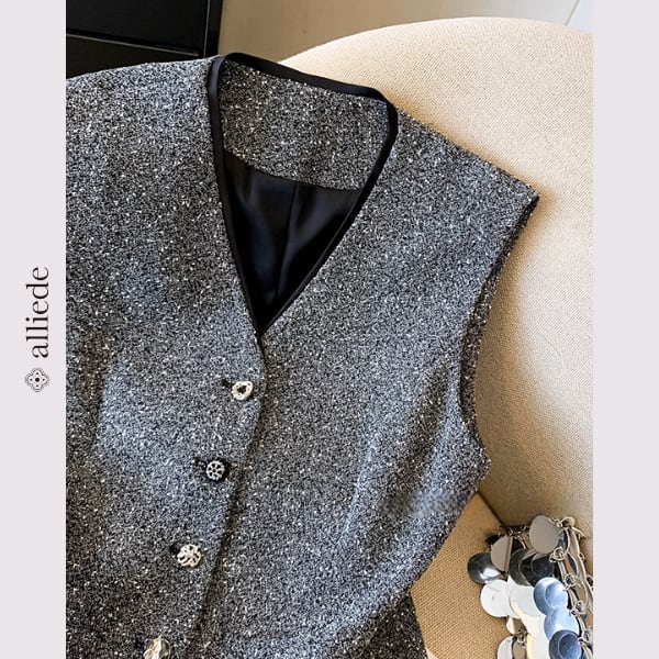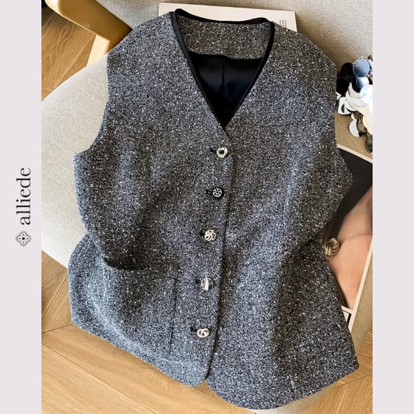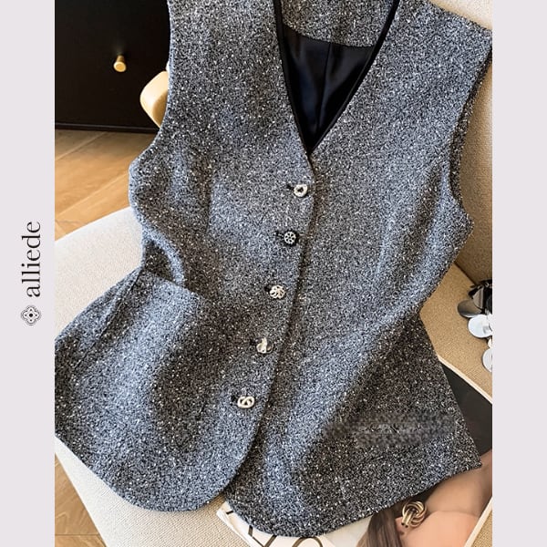 シンプルながら存在感のあるデザインボタンが魅力のノースリーブベスト。すっきりとしたシルエットで、ブラウスやカットソーとのレイヤードに最適。 【サイズ】 S /着丈 61cm /バスト 88cm /肩幅 37cm M /着丈 62cm /バスト 92cm /肩幅 38cm L /着丈 63cm /バスト 96cm /肩幅 39cm XL /着丈 64cm /バスト 100cm /肩幅 40cm ※1〜3cmの誤差が生じる場合がございます 【素材】 ポリエステル 【カラー】 シルバーグレー 【お届けについて】 当ショップはお客様の商品を1点1点検品・梱包をした後、海外からの直接発送となります。 そのため発送までにご決済から3週間前後のお時間を頂いております。 お時間にゆとりを持ってご購入頂くことをおすすめいたします。 ◼️注意事項 ・タイミングによっては商品在庫切れにより注文キャンセルとさせていただく恐れもございますので、予めご了承くださいませ。 ・こちらは輸入品となります。日本製とは検品基準が異なる為、新品未使用品でもごくわずかな汚れやほつれがある場合もございます。 ・仕入れ工場を変えることがあるため、記載サイズと若干異なる場合がございます。 ・商品の色味は、お手持ちのスマートフォンの画面によって実物と若干異なる場合がございます。 ・イメージ違いやサイズ交換等、お客さまご都合による交換、返品は対応出来かねます。 ———————————— ご購入前にこちらをお読みください →https://www.alliede.shop/about ————————————