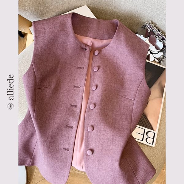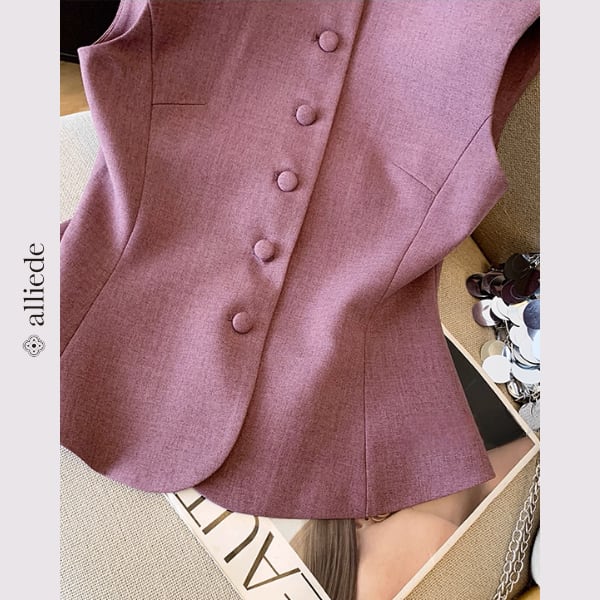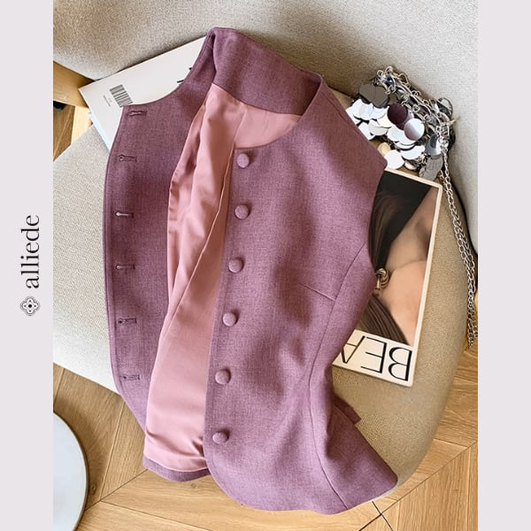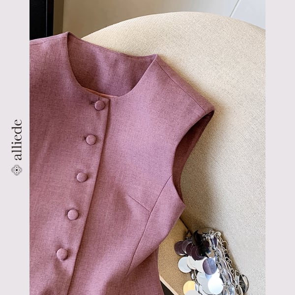 シンプルなラウンドネックに包みボタンが映えるジレ。無駄のないストレートなラインで、シャツやカットソーに重ねるだけで洗練された着こなしに。オンにもオフにも合わせやすい万能アイテムです。 【サイズ】 S /着丈 57cm /バスト 88cm /肩幅 38cm M /着丈 58cm /バスト 94cm /肩幅 39cm L /着丈 59cm /バスト 98cm /肩幅 40cm XL /着丈 60cm /バスト 102cm /肩幅 41cm ※1〜3cmの誤差が生じる場合がございます 【素材】 ポリエステル・レーヨン・スパンデックス 【カラー】 パープル 【お届けについて】 当ショップはお客様の商品を1点1点検品・梱包をした後、海外からの直接発送となります。 そのため発送までにご決済から3週間前後のお時間を頂いております。 お時間にゆとりを持ってご購入頂くことをおすすめいたします。 ◼️注意事項 ・タイミングによっては商品在庫切れにより注文キャンセルとさせていただく恐れもございますので、予めご了承くださいませ。 ・こちらは輸入品となります。日本製とは検品基準が異なる為、新品未使用品でもごくわずかな汚れやほつれがある場合もございます。 ・仕入れ工場を変えることがあるため、記載サイズと若干異なる場合がございます。 ・商品の色味は、お手持ちのスマートフォンの画面によって実物と若干異なる場合がございます。 ・イメージ違いやサイズ交換等、お客さまご都合による交換、返品は対応出来かねます。 ———————————— ご購入前にこちらをお読みください →https://www.alliede.shop/about ————————————