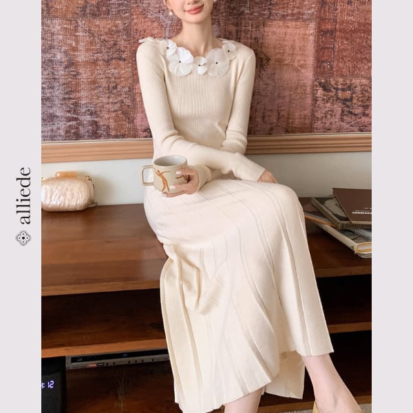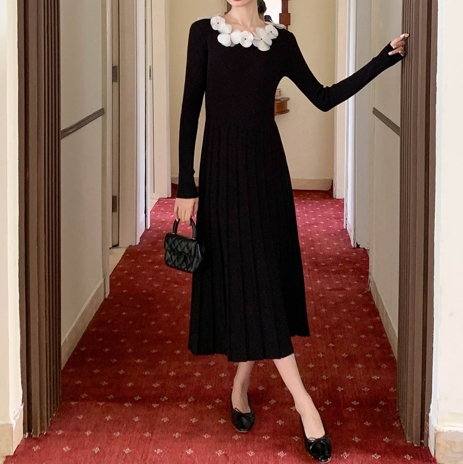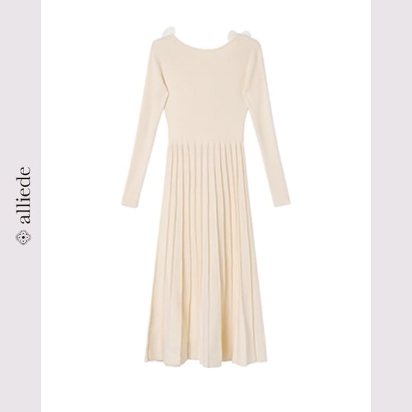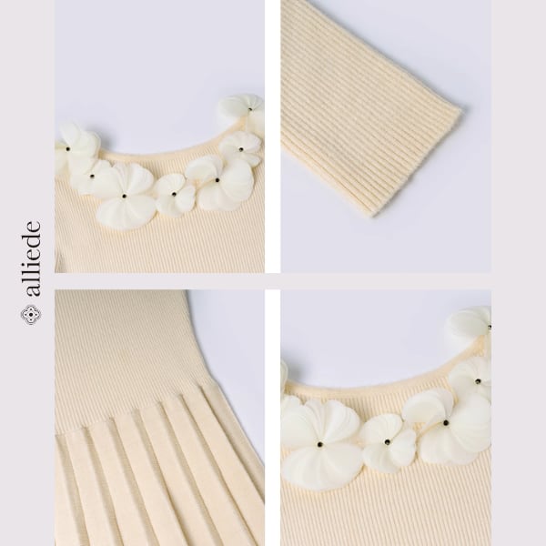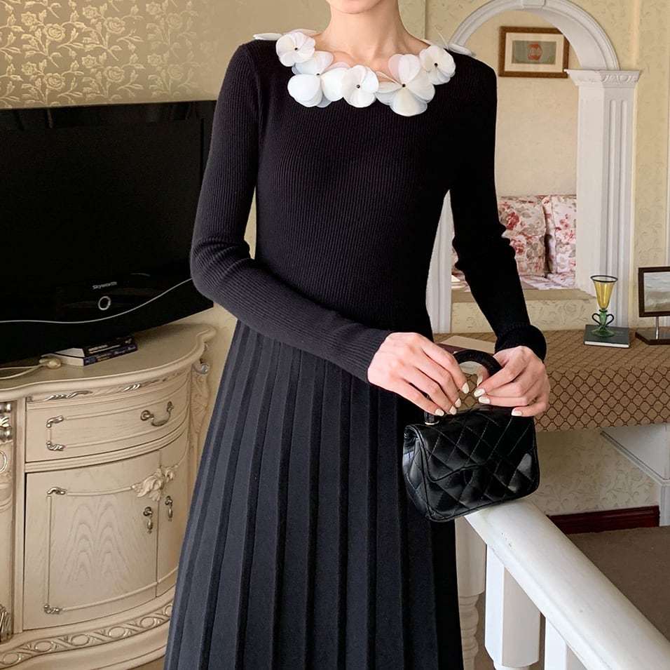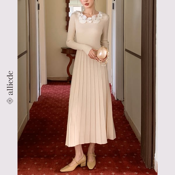 襟元に立体的なフラワーモチーフをあしらった華やかなニットワンピース。 細身シルエットとプリーツスカートで上品な印象に。 【サイズ】 XS /着丈 116cm /バスト 66cm /肩幅 34cm /袖丈 59cm S /着丈 118cm /バスト 70cm /肩幅 35cm /袖丈 60cm M /着丈 120cm /バスト 74cm /肩幅 36cm /袖丈 61cm ※1〜3cmの誤差が生じる場合がございます 【素材】 ポリエステル・ビスコース・ナイロン 【カラー】 ベージュ・ブラック 【お届けについて】 当ショップはお客様の商品を1点1点検品・梱包をした後、海外からの直接発送となります。 そのため発送までにご決済から3週間前後のお時間を頂いております。 お時間にゆとりを持ってご購入頂くことをおすすめいたします。 ◼️注意事項 ・タイミングによっては商品在庫切れにより注文キャンセルとさせていただく恐れもございますので、予めご了承くださいませ。 ・こちらは輸入品となります。日本製とは検品基準が異なる為、新品未使用品でもごくわずかな汚れやほつれがある場合もございます。 ・仕入れ工場を変えることがあるため、記載サイズと若干異なる場合がございます。 ・商品の色味は、お手持ちのスマートフォンの画面によって実物と若干異なる場合がございます。 ・イメージ違いやサイズ交換等、お客さまご都合による交換、返品は対応出来かねます。 ———————————— ご購入前にこちらをお読みください →https://www.alliede.shop/about ————————————