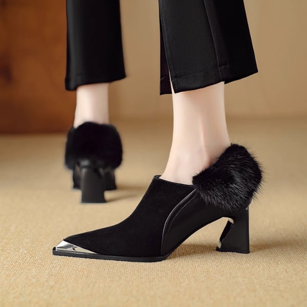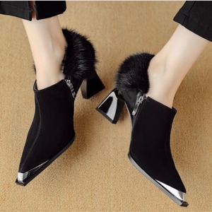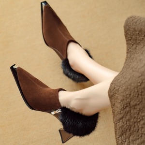 ふんわりファーが足首を包むショートブーツ。ポインテッドトゥとメタリックヒールの輝きが調和し、上品で華やかな足元を演出します。 【サイズ】 22.5cm〜24.5cm ヒール 6.5cm 【素材】 スエード 【カラー】 ブラック・ブラウン 【お届けについて】 当ショップはお客様の商品を1点1点検品・梱包をした後、海外からの直接発送となります。 そのため発送までにご決済から3週間前後のお時間を頂いております。 お時間にゆとりを持ってご購入頂くことをおすすめいたします。 ◼️注意事項 ・タイミングによっては商品在庫切れにより注文キャンセルとさせていただく恐れもございますので、予めご了承くださいませ。 ・こちらは輸入品となります。日本製とは検品基準が異なる為、新品未使用品でもごくわずかな汚れやほつれがある場合もございます。 ・仕入れ工場を変えることがあるため、記載サイズと若干異なる場合がございます。 ・商品の色味は、お手持ちのスマートフォンの画面によって実物と若干異なる場合がございます。 ・イメージ違いやサイズ交換等、お客さまご都合による交換、返品は対応出来かねます。 ———————————— ご購入前にこちらをお読みください →https://www.alliede.shop/about ————————————
