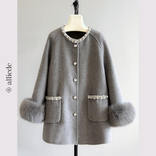 首元とポケットに贅沢なビジューをあしらい、袖口ファーが華やかさを添える大人の冬コート。軽やかなウール混素材で、羽織るだけで旬のムードに。 【サイズ】 S /着丈 74cm /バスト 106cm /袖丈 61cm M /着丈 75cm /バスト 108cm /袖丈 62cm ※1〜3cmの誤差が生じる場合がございます 【素材】 ウール70%・ポリエステル・ナイロン 【カラー】 グレー・ブラック・ホワイト 【お届けについて】 当ショップはお客様の商品を1点1点検品・梱包をした後、海外からの直接発送となります。 そのため発送までにご決済から3週間前後のお時間を頂いております。 お時間にゆとりを持ってご購入頂くことをおすすめいたします。 ◼️注意事項 ・タイミングによっては商品在庫切れにより注文キャンセルとさせていただく恐れもございますので、予めご了承くださいませ。 ・こちらは輸入品となります。日本製とは検品基準が異なる為、新品未使用品でもごくわずかな汚れやほつれがある場合もございます。 ・仕入れ工場を変えることがあるため、記載サイズと若干異なる場合がございます。 ・商品の色味は、お手持ちのスマートフォンの画面によって実物と若干異なる場合がございます。 ・イメージ違いやサイズ交換等、お客さまご都合による交換、返品は対応出来かねます。 ———————————— ご購入前にこちらをお読みください →https://www.alliede.shop/about ————————————