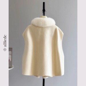 ふんわりとしたフォックスファーが目を惹くポンチョ風コート。ウール100%素材で仕立てられ、羽織るだけで華やかさをプラス。パンツにもスカートにも合わせやすく、秋冬の主役アウターとしておすすめです。 【サイズ】 S /着丈 55cm /バスト 156cm /肩幅 62cm M /着丈 56cm /バスト 160cm /肩幅 63cm ※1〜3cmの誤差が生じる場合がございます 【素材】 ウール・フォックスファー 【カラー】 キャメル・ブラック・ホワイト 【お届けについて】 当ショップはお客様の商品を1点1点検品・梱包をした後、海外からの直接発送となります。 そのため発送までにご決済から3週間前後のお時間を頂いております。 お時間にゆとりを持ってご購入頂くことをおすすめいたします。 ◼️注意事項 ・タイミングによっては商品在庫切れにより注文キャンセルとさせていただく恐れもございますので、予めご了承くださいませ。 ・こちらは輸入品となります。日本製とは検品基準が異なる為、新品未使用品でもごくわずかな汚れやほつれがある場合もございます。 ・仕入れ工場を変えることがあるため、記載サイズと若干異なる場合がございます。 ・商品の色味は、お手持ちのスマートフォンの画面によって実物と若干異なる場合がございます。 ・イメージ違いやサイズ交換等、お客さまご都合による交換、返品は対応出来かねます。 ———————————— ご購入前にこちらをお読みください →https://www.alliede.shop/about ————————————