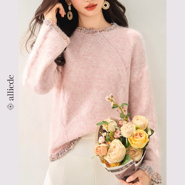 やわらかな起毛感が優しい印象のニットプルオーバー。 襟元と袖口、裾にあしらったミックスヤーンがさりげない華やぎをプラス。 1枚で顔まわりが明るくなる大人フェミニンな1着。 【サイズ】 S /着丈 58cm /バスト 104cm /肩幅 57cm /袖丈 42cm M /着丈 59cm /バスト 108cm /肩幅 58cm /袖丈 43cm L /着丈 60cm /バスト 112cm /肩幅 59cm /袖丈 44cm XL /着丈 61cm /バスト 126cm /肩幅 60cm /袖丈 45cm ※1〜3cmの誤差が生じる場合がございます 【素材】 ポリエステル 【カラー】 ピンク 【お届けについて】 当ショップはお客様の商品を1点1点検品・梱包をした後、海外からの直接発送となります。 そのため発送までにご決済から3週間前後のお時間を頂いております。 お時間にゆとりを持ってご購入頂くことをおすすめいたします。 ◼️注意事項 ・タイミングによっては商品在庫切れにより注文キャンセルとさせていただく恐れもございますので、予めご了承くださいませ。 ・こちらは輸入品となります。日本製とは検品基準が異なる為、新品未使用品でもごくわずかな汚れやほつれがある場合もございます。 ・仕入れ工場を変えることがあるため、記載サイズと若干異なる場合がございます。 ・商品の色味は、お手持ちのスマートフォンの画面によって実物と若干異なる場合がございます。 ・イメージ違いやサイズ交換等、お客さまご都合による交換、返品は対応出来かねます。 ———————————— ご購入前にこちらをお読みください →https://www.alliede.shop/about ————————————