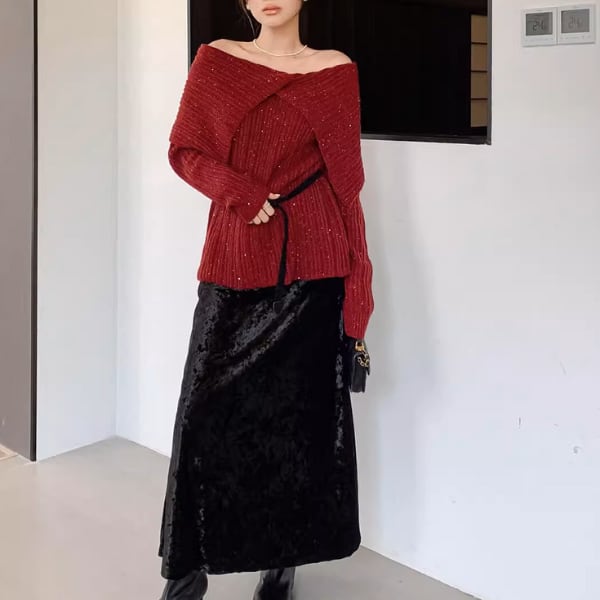 オフショルダーニットプルオーバー A3303