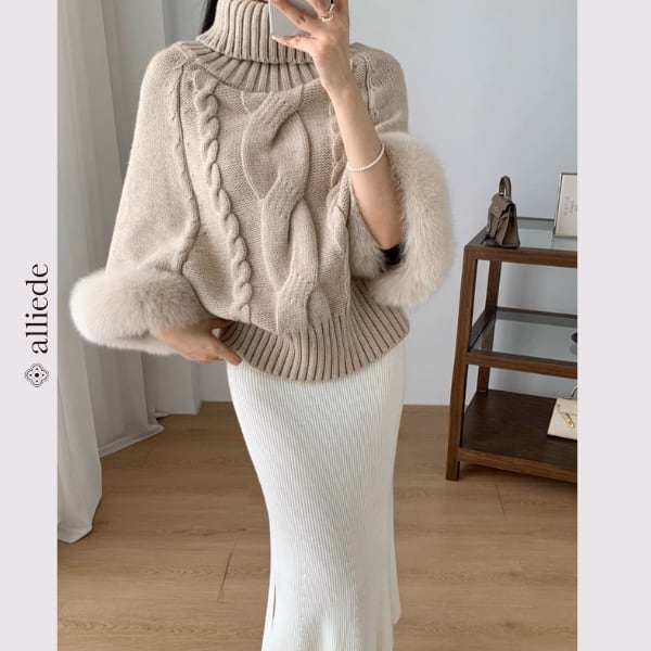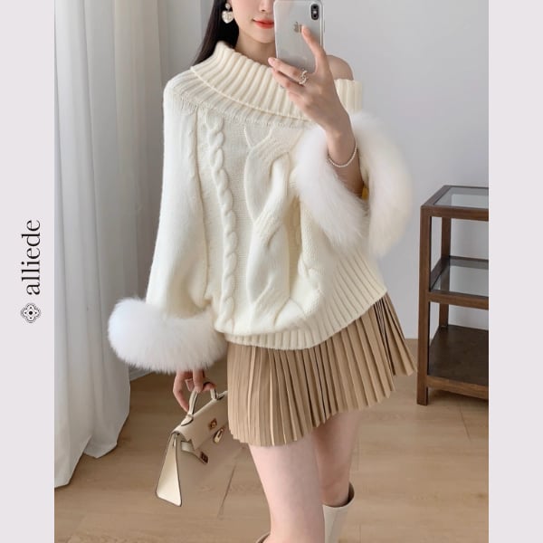 ファースリーブケーブルニットトップス A3319