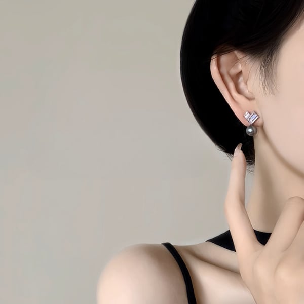 グレーパールスクエアストーンピアス A3334