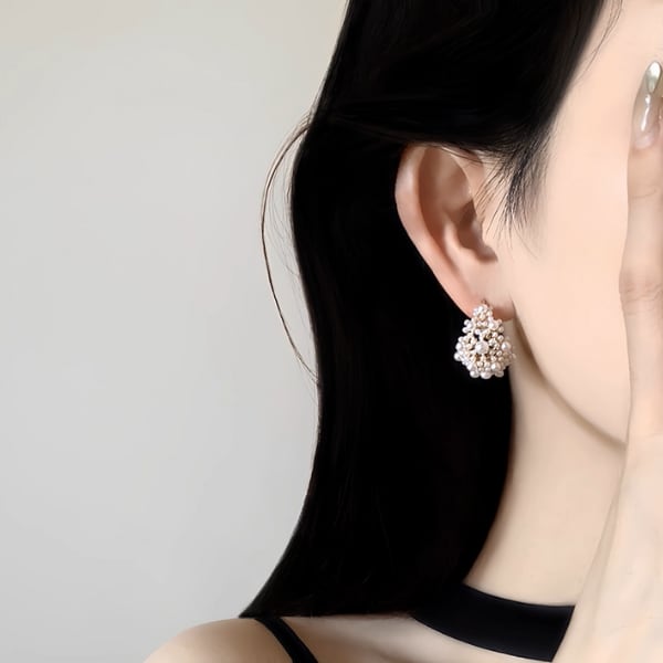 立体的なデザインが光を受けて輝き、顔まわりを明るく演出。
