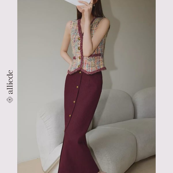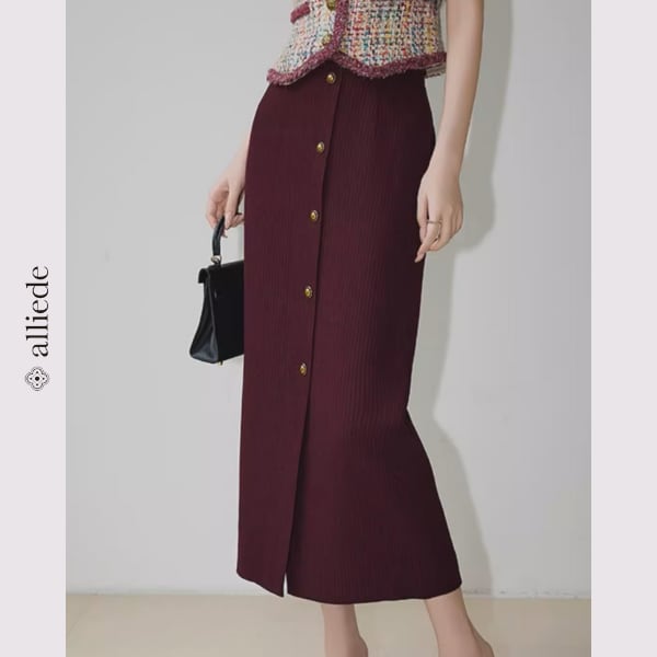 すっきりとしたIラインに、フロントボタンとスリットが軽やかさを添えるスカート。縦畝のリブ素材が脚長効果を演出。ブラウスやニットとも好相性で、品よく映える一枚。 【サイズ】 XS /着丈 83cm /ウエスト 64cm /ヒップ 94cm S /着丈 89cm /ウエスト 64cm /ヒップ 94cm M /着丈 90cm /ウエスト 68cm /ヒップ 98cm L /着丈 91cm /ウエスト 72cm /ヒップ 102cm ※1〜3cmの誤差が生じる場合がございます 【素材】 ポリエステル・ウール 【カラー】 ボルドー 【お届けについて】 当ショップはお客様の商品を1点1点検品・梱包をした後、海外からの直接発送となります。 そのため発送までにご決済から3週間前後のお時間を頂いております。 お時間にゆとりを持ってご購入頂くことをおすすめいたします。 ◼️注意事項 ・タイミングによっては商品在庫切れにより注文キャンセルとさせていただく恐れもございますので、予めご了承くださいませ。 ・こちらは輸入品となります。日本製とは検品基準が異なる為、新品未使用品でもごくわずかな汚れやほつれがある場合もございます。 ・仕入れ工場を変えることがあるため、記載サイズと若干異なる場合がございます。 ・商品の色味は、お手持ちのスマートフォンの画面によって実物と若干異なる場合がございます。 ・イメージ違いやサイズ交換等、お客さまご都合による交換、返品は対応出来かねます。 ———————————— ご購入前にこちらをお読みください →https://www.alliede.shop/about ————————————