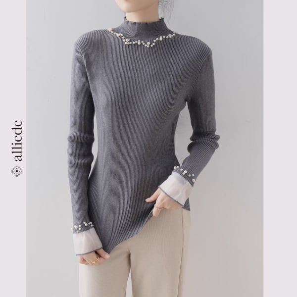 ネックラインと袖口にあしらったパール調ディテールが、装いにさりげない華やかさを添えるリブニット。程よくフィットするシルエットで、パンツにもスカートにも合わせやすく、デイリーからきちんと感のあるシーンまで幅広く活躍します。 【サイズ】 S /着丈 50cm /バスト 76cm /肩幅 35cm /袖丈 59cm M /着丈 51cm /バスト 80cm /肩幅 36cm /袖丈 60cm L /着丈 52cm /バスト 84cm /肩幅 37cm /袖丈 61cm XL /着丈 53cm /バスト 88cm /肩幅 38cm /袖丈 62cm 2XL /着丈 54cm /バスト 92cm /肩幅 39cm /袖丈 63cm ※1〜3cmの誤差が生じる場合がございます 【素材】 ポリエステル 【カラー】 グレー・ブラック 【お届けについて】 当ショップはお客様の商品を1点1点検品・梱包をした後、海外からの直接発送となります。 そのため発送までにご決済から3週間前後のお時間を頂いております。 お時間にゆとりを持ってご購入頂くことをおすすめいたします。 ◼️注意事項 ・タイミングによっては商品在庫切れにより注文キャンセルとさせていただく恐れもございますので、予めご了承くださいませ。 ・こちらは輸入品となります。日本製とは検品基準が異なる為、新品未使用品でもごくわずかな汚れやほつれがある場合もございます。 ・仕入れ工場を変えることがあるため、記載サイズと若干異なる場合がございます。 ・商品の色味は、お手持ちのスマートフォンの画面によって実物と若干異なる場合がございます。 ・イメージ違いやサイズ交換等、お客さまご都合による交換、返品は対応出来かねます。 ———————————— ご購入前にこちらをお読みください →https://www.alliede.shop/about ————————————