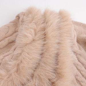 重なり合うファーが首元を包み込み、柔らかな表情を添えるニット。立体的なケーブル編みが品よく映え、ふんわりした袖のラインが女性らしさを引き立てます。 【サイズ】フリーサイズ 着丈 66cm /バスト110-130cm /肩幅 55cm /袖丈 46cm ※1〜3cmの誤差が生じる場合がございます 【素材】 ビスコース・ナイロン 【カラー】 ベージュ・ホワイト・ライトブルー 【お届けについて】 当ショップはお客様の商品を1点1点検品・梱包をした後、海外からの直接発送となります。 そのため発送までにご決済から3週間前後のお時間を頂いております。 お時間にゆとりを持ってご購入頂くことをおすすめいたします。 ◼️注意事項 ・タイミングによっては商品在庫切れにより注文キャンセルとさせていただく恐れもございますので、予めご了承くださいませ。 ・こちらは輸入品となります。日本製とは検品基準が異なる為、新品未使用品でもごくわずかな汚れやほつれがある場合もございます。 ・仕入れ工場を変えることがあるため、記載サイズと若干異なる場合がございます。 ・商品の色味は、お手持ちのスマートフォンの画面によって実物と若干異なる場合がございます。 ・イメージ違いやサイズ交換等、お客さまご都合による交換、返品は対応出来かねます。 ———————————— ご購入前にこちらをお読みください →https://www.alliede.shop/about ————————————