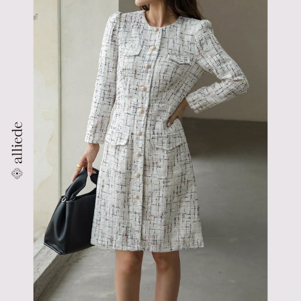 表情のあるツイード素材を使用したノーカラーワンピース。フロントボタンの縦ラインと、程よくウエストをとらえたシルエットが全体をすっきり見せます。 【サイズ】 S /着丈 96cm /バスト 88cm /ウエスト 70cm /肩幅 33+2cm /袖丈 54cm M /着丈 97cm /バスト 92cm /ウエスト 74cm /肩幅 34+2cm /袖丈 55cm L /着丈 98cm /バスト 96cm /ウエスト 78cm /肩幅 35+2cm /袖丈 55cm XL /着丈 99cm /バスト 100cm /ウエスト 82cm /肩幅 36+2cm /袖丈 56cm 2XL /着丈 100cm /バスト 102cm /ウエスト 88cm /肩幅 38+2cm /袖丈 56cm ※1〜3cmの誤差が生じる場合がございます 【素材】 ポリエステル 【カラー】 ホワイト 【お届けについて】 当ショップはお客様の商品を1点1点検品・梱包をした後、海外からの直接発送となります。 そのため発送までにご決済から3週間前後のお時間を頂いております。 お時間にゆとりを持ってご購入頂くことをおすすめいたします。 ◼️注意事項 ・タイミングによっては商品在庫切れにより注文キャンセルとさせていただく恐れもございますので、予めご了承くださいませ。 ・こちらは輸入品となります。日本製とは検品基準が異なる為、新品未使用品でもごくわずかな汚れやほつれがある場合もございます。 ・仕入れ工場を変えることがあるため、記載サイズと若干異なる場合がございます。 ・商品の色味は、お手持ちのスマートフォンの画面によって実物と若干異なる場合がございます。 ・イメージ違いやサイズ交換等、お客さまご都合による交換、返品は対応出来かねます。 ———————————— ご購入前にこちらをお読みください →https://www.alliede.shop/about ————————————