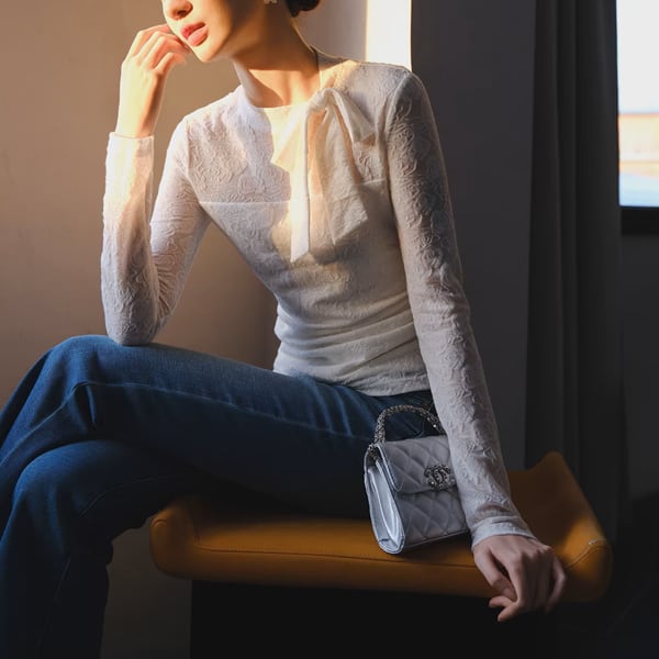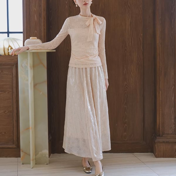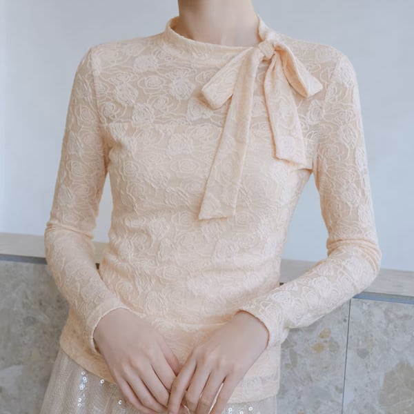 繊細なレース素材に、首元のリボンデザインがやさしいアクセントを添えるトップス。程よく体に沿うシルエットで、インでもアウトでもバランスよく着用できます。スカートにもパンツにも合わせやすく、装いに華やかさをプラスしてくれる一枚です。 【サイズ】 XS /着丈 49cm /バスト 74cm /肩幅 34cm /袖丈 60cm S /着丈 50cm /バスト 78cm /肩幅 35cm /袖丈 61cm M /着丈 51cm /バスト 82cm /肩幅 36cm /袖丈 62cm L /着丈 52cm /バスト 86cm /肩幅 37cm /袖丈 63cm ※1〜3cmの誤差が生じる場合がございます 【素材】 ポリエステル・ナイロン 【カラー】 サーモンピンク・オフホワイト 【お届けについて】 当ショップはお客様の商品を1点1点検品・梱包をした後、海外からの直接発送となります。 そのため発送までにご決済から3週間前後のお時間を頂いております。 お時間にゆとりを持ってご購入頂くことをおすすめいたします。 ◼️注意事項 ・タイミングによっては商品在庫切れにより注文キャンセルとさせていただく恐れもございますので、予めご了承くださいませ。 ・こちらは輸入品となります。日本製とは検品基準が異なる為、新品未使用品でもごくわずかな汚れやほつれがある場合もございます。 ・仕入れ工場を変えることがあるため、記載サイズと若干異なる場合がございます。 ・商品の色味は、お手持ちのスマートフォンの画面によって実物と若干異なる場合がございます。 ・イメージ違いやサイズ交換等、お客さまご都合による交換、返品は対応出来かねます。 ———————————— ご購入前にこちらをお読みください →https://www.alliede.shop/about ————————————