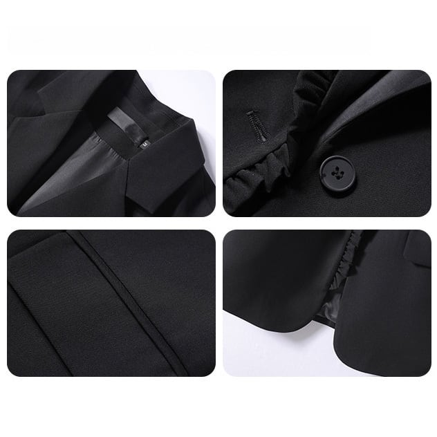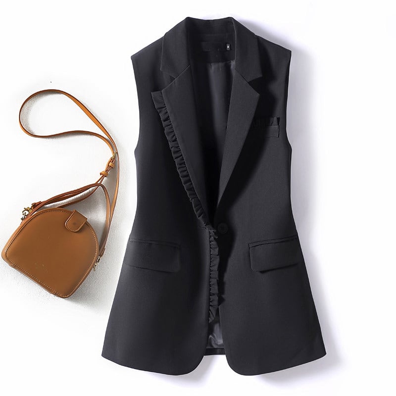 フロントにあしらったフリルディテールが印象的なテーラードジレ。シャープな襟元と縦ラインのシルエットで、羽織るだけですっきりとしたバランスに。ブラウスやワンピースに重ねるだけで、コーディネートに程よいアクセントを添えてくれます。 【サイズ】 M /着丈 72m /バスト 94cm /肩幅 40cm L /着丈 73m /バスト 98cm /肩幅 41cm XL /着丈 74m /バスト 104cm /肩幅 42cm ※1〜3cmの誤差が生じる場合がございます 【素材】 ポリエステル・ポリウレタン 【カラー】 ブラック 【お届けについて】 当ショップはお客様の商品を1点1点検品・梱包をした後、海外からの直接発送となります。 そのため発送までにご決済から3週間前後のお時間を頂いております。 お時間にゆとりを持ってご購入頂くことをおすすめいたします。 ◼️注意事項 ・タイミングによっては商品在庫切れにより注文キャンセルとさせていただく恐れもございますので、予めご了承くださいませ。 ・こちらは輸入品となります。日本製とは検品基準が異なる為、新品未使用品でもごくわずかな汚れやほつれがある場合もございます。 ・仕入れ工場を変えることがあるため、記載サイズと若干異なる場合がございます。 ・商品の色味は、お手持ちのスマートフォンの画面によって実物と若干異なる場合がございます。 ・イメージ違いやサイズ交換等、お客さまご都合による交換、返品は対応出来かねます。 ———————————— ご購入前にこちらをお読みください →https://www.alliede.shop/about ————————————