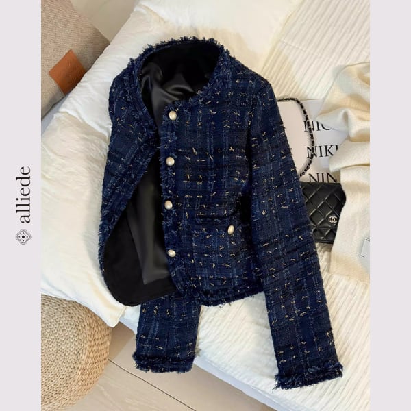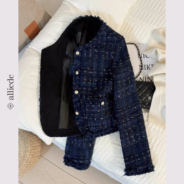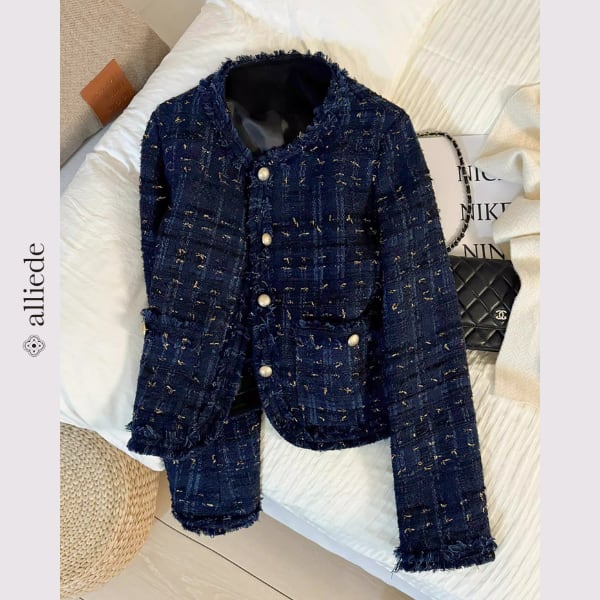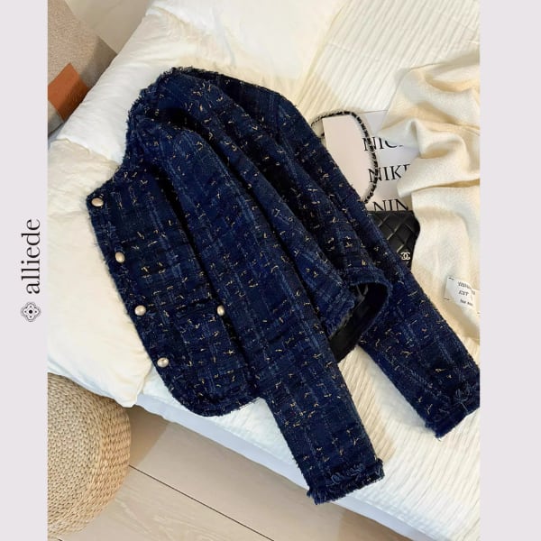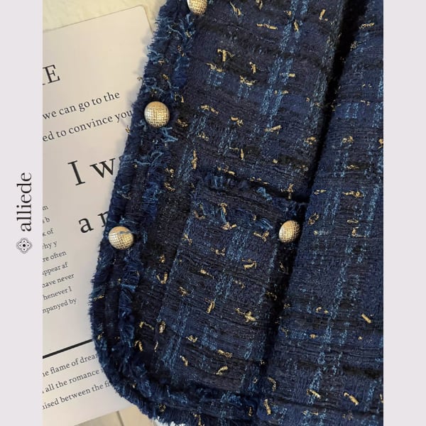 表情豊かなツイード素材にフリンジディテールをあしらった上品ジャケット。ゴールド調ボタンがアクセントになり、羽織るだけで洗練された印象に。 【サイズ】 S /着丈 44cm /バスト 92cm /肩幅 38cm /袖丈 57cm M /着丈 45cm /バスト 96cm /肩幅 39cm /袖丈 58cm L /着丈 46cm /バスト 100cm /肩幅 40cm /袖丈 59cm XL /着丈 47cm /バスト 104cm /肩幅 41cm /袖丈 60cm ※1〜3cmの誤差が生じる場合がございます 【素材】 ポリエステル 【カラー】 ネイビーブルー 【お届けについて】 当ショップはお客様の商品を1点1点検品・梱包をした後、海外からの直接発送となります。 そのため発送までにご決済から3週間前後のお時間を頂いております。 お時間にゆとりを持ってご購入頂くことをおすすめいたします。 ◼️注意事項 ・タイミングによっては商品在庫切れにより注文キャンセルとさせていただく恐れもございますので、予めご了承くださいませ。 ・こちらは輸入品となります。日本製とは検品基準が異なる為、新品未使用品でもごくわずかな汚れやほつれがある場合もございます。 ・仕入れ工場を変えることがあるため、記載サイズと若干異なる場合がございます。 ・商品の色味は、お手持ちのスマートフォンの画面によって実物と若干異なる場合がございます。 ・イメージ違いやサイズ交換等、お客さまご都合による交換、返品は対応出来かねます。 ———————————— ご購入前にこちらをお読みください →https://www.alliede.shop/about ————————————