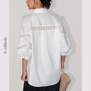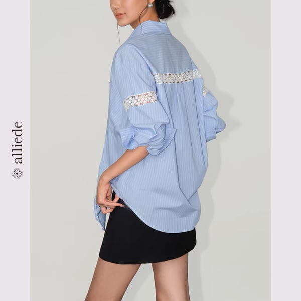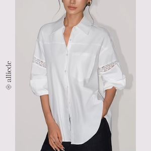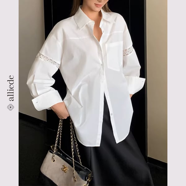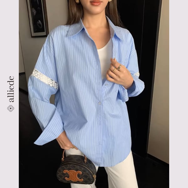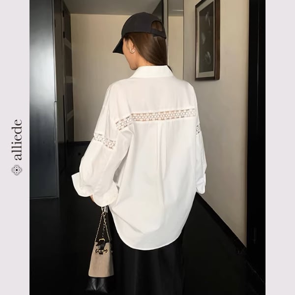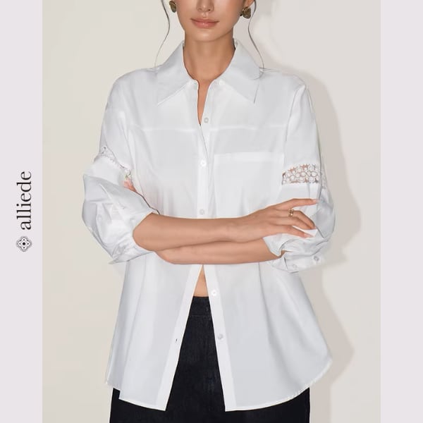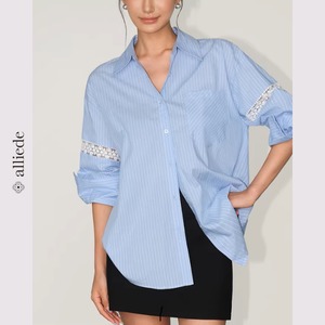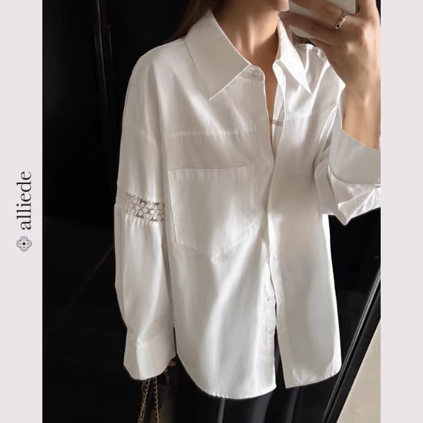 袖のレース切替がさりげない華やかさを添えるデザインシャツ。ゆとりのあるシルエットで抜け感のある着こなしが叶います。