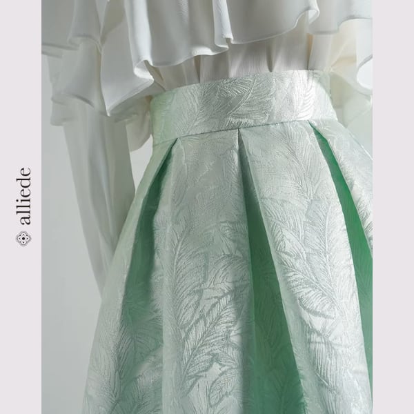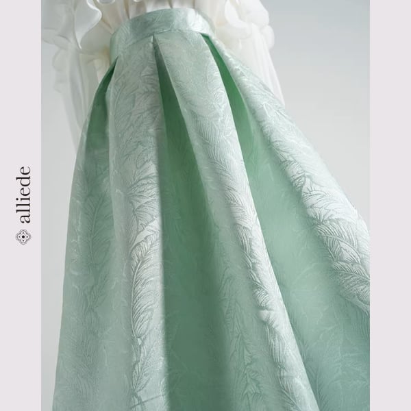 立体感のあるジャガード素材が印象的なフレアスカート。程よいハリ感で美しいシルエットをキープし、動くたびに軽やかな広がりを演出します。