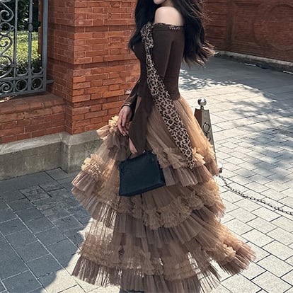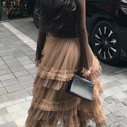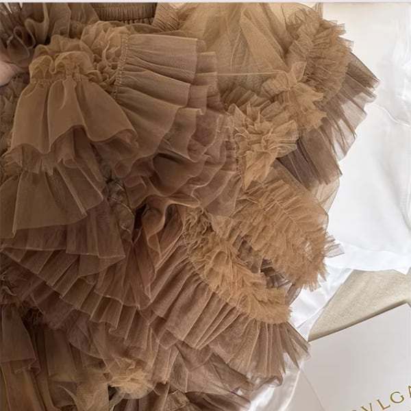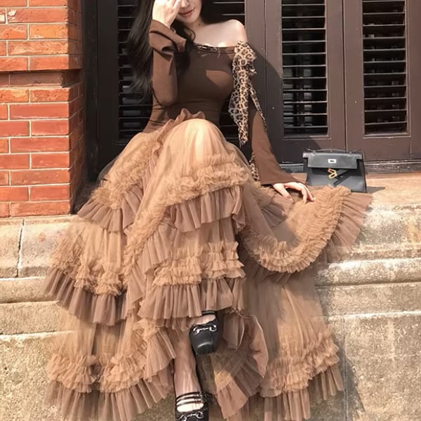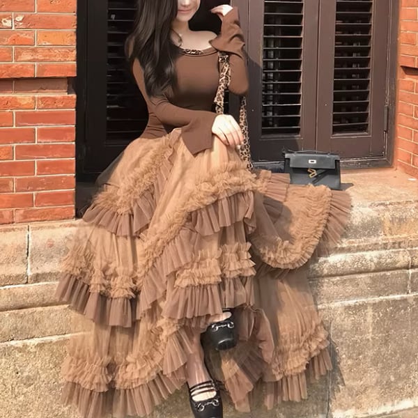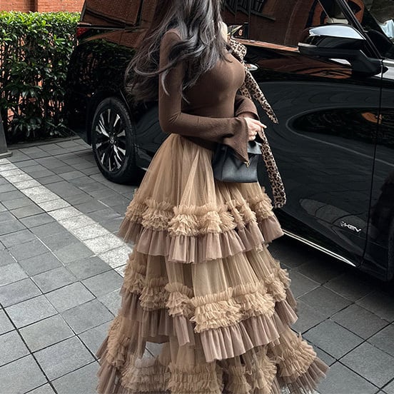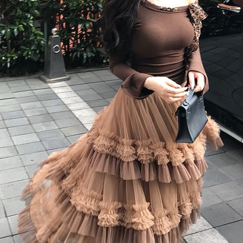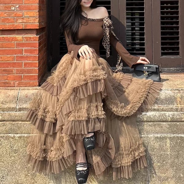 贅沢に重ねたチュールと立体的なフリルが印象的なティアードスカート。動くたびに揺れる軽やかなシルエットが華やかさを演出し、コーデの主役に。 【サイズ】 S /着丈 87cm /ウエスト 60cm / ペチコート長 72cm M /着丈 88cm /ウエスト 62cm / ペチコート長 73cm L /着丈 89cm /ウエスト 64cm / ペチコート長 74cm ※1〜3cmの誤差が生じる場合がございます 【素材】 ポリエステル 【カラー】 ブラウン 【お届けについて】 当ショップはお客様の商品を1点1点検品・梱包をした後、海外からの直接発送となります。 そのため発送までにご決済から3週間前後のお時間を頂いております。 お時間にゆとりを持ってご購入頂くことをおすすめいたします。 ◼️注意事項 ・タイミングによっては商品在庫切れにより注文キャンセルとさせていただく恐れもございますので、予めご了承くださいませ。 ・こちらは輸入品となります。日本製とは検品基準が異なる為、新品未使用品でもごくわずかな汚れやほつれがある場合もございます。 ・仕入れ工場を変えることがあるため、記載サイズと若干異なる場合がございます。 ・商品の色味は、お手持ちのスマートフォンの画面によって実物と若干異なる場合がございます。 ・イメージ違いやサイズ交換等、お客さまご都合による交換、返品は対応出来かねます。 ———————————— ご購入前にこちらをお読みください →https://www.alliede.shop/about ————————————