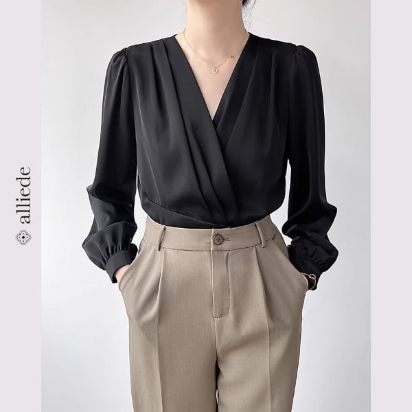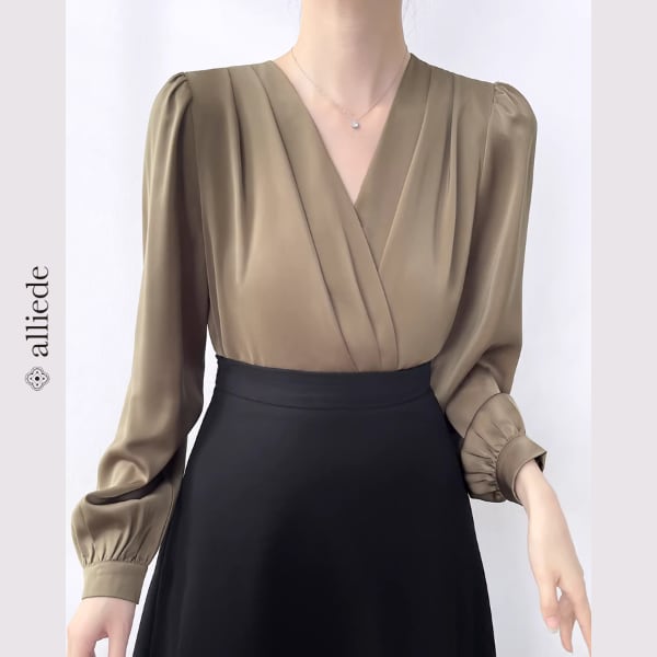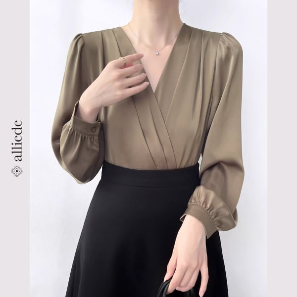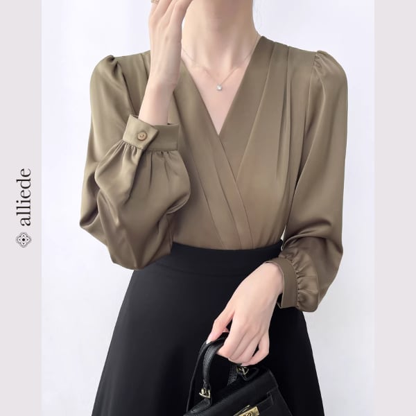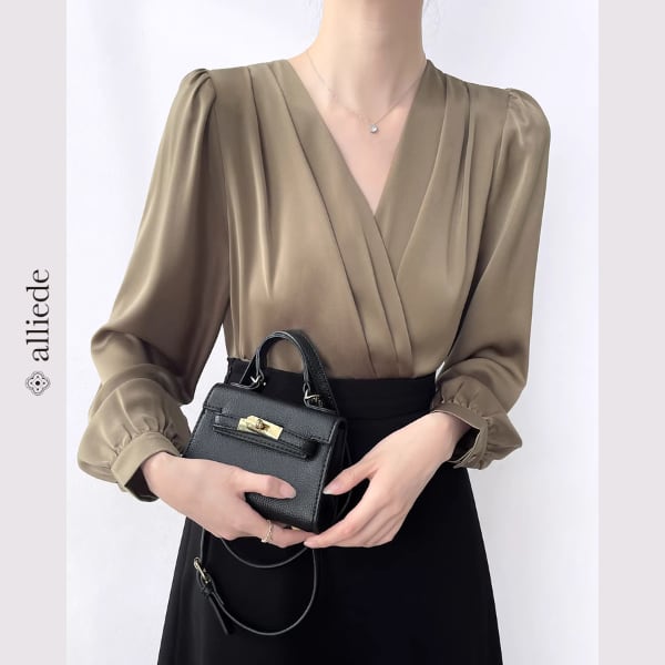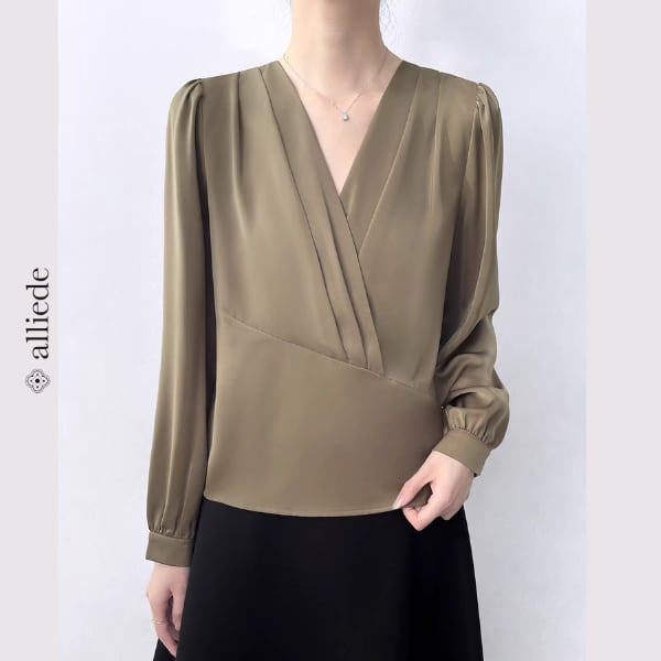 上品な光沢のあるサテン素材が魅力のカシュクールブラウス。しなやかな落ち感とVネックデザインが女性らしい印象を引き立て、洗練された雰囲気に。 【サイズ】 S /着丈 53cm /バスト 92cm /肩幅 36cm /袖丈 58cm M /着丈 54cm /バスト 96cm /肩幅 37cm /袖丈 59cm L /着丈 55cm /バスト 100cm /肩幅 38cm /袖丈 60cm XL /着丈 56cm /バスト 104cm /肩幅 39cm /袖丈 61cm ※1〜3cmの誤差が生じる場合がございます 【素材】 ポリエステル・ポリウレタン 【カラー】 カーキ・ブラック 【お届けについて】 当ショップはお客様の商品を1点1点検品・梱包をした後、海外からの直接発送となります。 そのため発送までにご決済から3週間前後のお時間を頂いております。 お時間にゆとりを持ってご購入頂くことをおすすめいたします。 ◼️注意事項 ・タイミングによっては商品在庫切れにより注文キャンセルとさせていただく恐れもございますので、予めご了承くださいませ。 ・こちらは輸入品となります。日本製とは検品基準が異なる為、新品未使用品でもごくわずかな汚れやほつれがある場合もございます。 ・仕入れ工場を変えることがあるため、記載サイズと若干異なる場合がございます。 ・商品の色味は、お手持ちのスマートフォンの画面によって実物と若干異なる場合がございます。 ・イメージ違いやサイズ交換等、お客さまご都合による交換、返品は対応出来かねます。 ———————————— ご購入前にこちらをお読みください →https://www.alliede.shop/about ————————————
