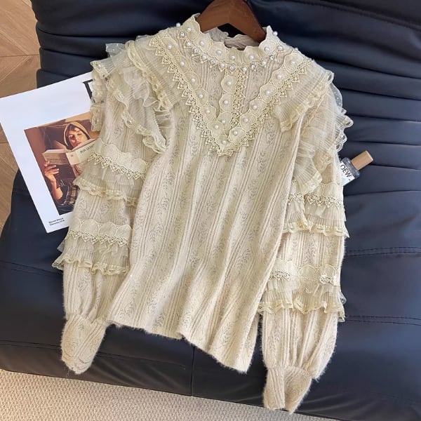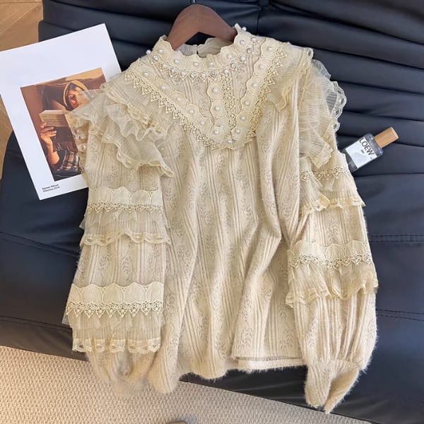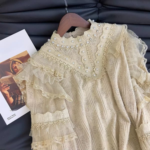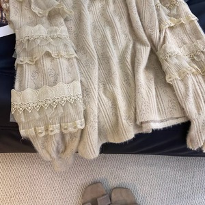 繊細なレースとパール装飾が印象的なニットトップス。立体的なフリルデザインが顔まわりを華やかに演出し、1枚で存在感のある着こなしに。 【サイズ】 S /着丈 57cm /バスト 98cm /袖丈 62cm M /着丈 58cm /バスト 100m /袖丈 63cm L /着丈 59cm /バスト 102cm /袖丈 63cm ※1〜3cmの誤差が生じる場合がございます 【素材】 ポリエステル 【カラー】 ベージュ 【お届けについて】 当ショップはお客様の商品を1点1点検品・梱包をした後、海外からの直接発送となります。 そのため発送までにご決済から3週間前後のお時間を頂いております。 お時間にゆとりを持ってご購入頂くことをおすすめいたします。 ◼️注意事項 ・タイミングによっては商品在庫切れにより注文キャンセルとさせていただく恐れもございますので、予めご了承くださいませ。 ・こちらは輸入品となります。日本製とは検品基準が異なる為、新品未使用品でもごくわずかな汚れやほつれがある場合もございます。 ・仕入れ工場を変えることがあるため、記載サイズと若干異なる場合がございます。 ・商品の色味は、お手持ちのスマートフォンの画面によって実物と若干異なる場合がございます。 ・イメージ違いやサイズ交換等、お客さまご都合による交換、返品は対応出来かねます。 ———————————— ご購入前にこちらをお読みください →https://www.alliede.shop/about ————————————