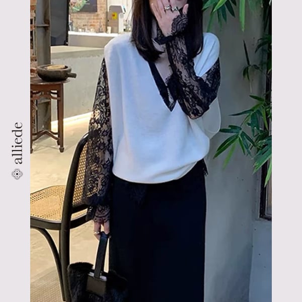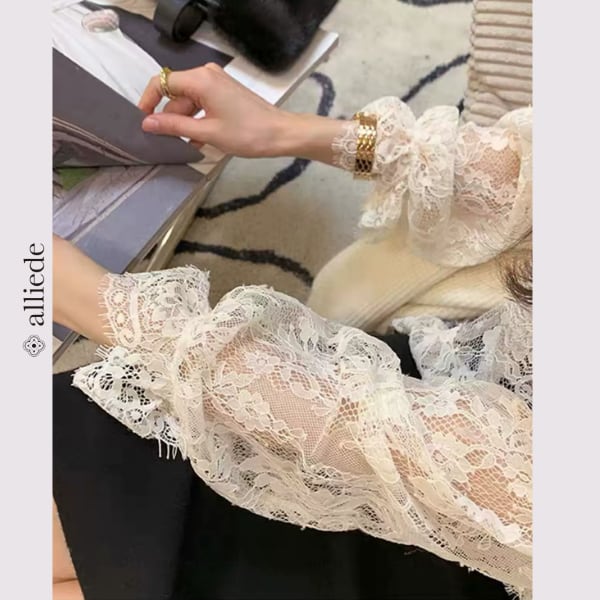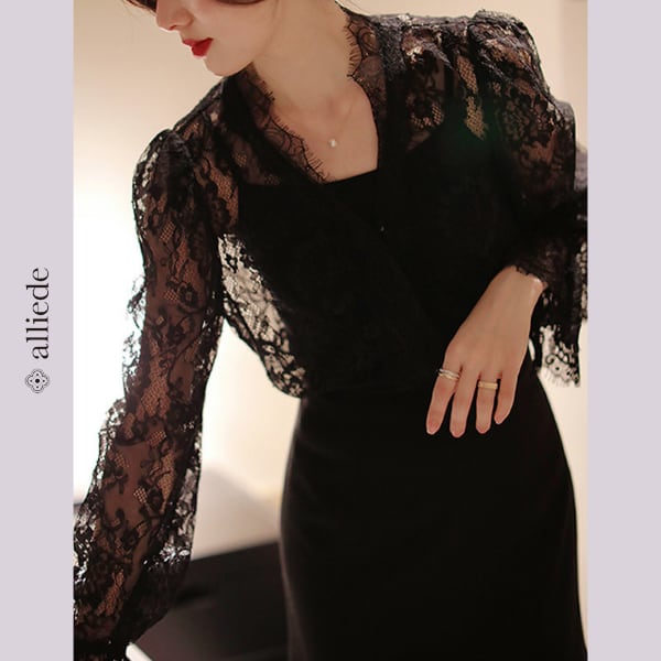シアーレースVネックブラウス A3664