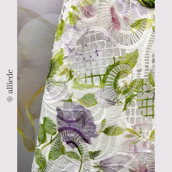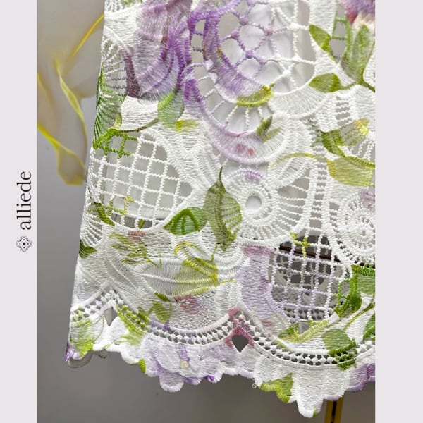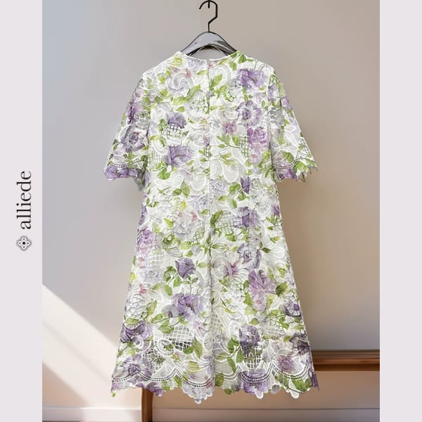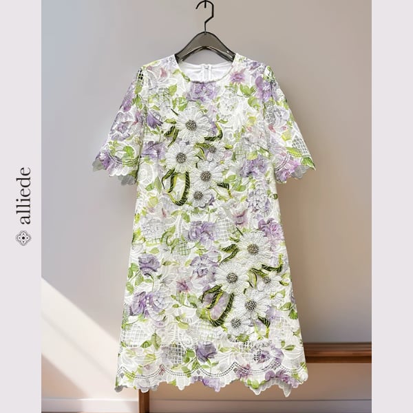 立体感のあるフラワーレースに繊細なビーズ装飾を施した華やかなワンピース。透明感のある軽やかな生地が女性らしさを引き立て、着るだけで上品な印象に。特別な日のお出かけにも映える存在感のある一着です。