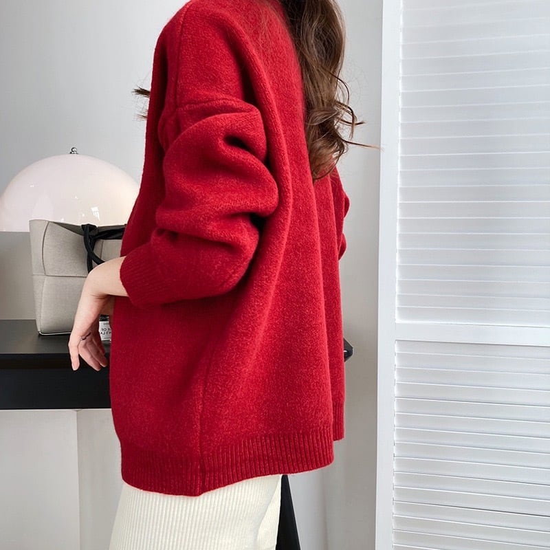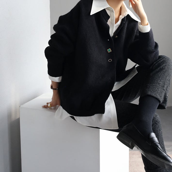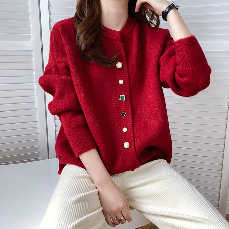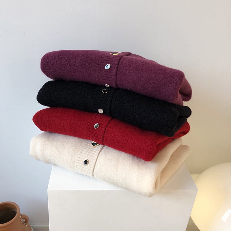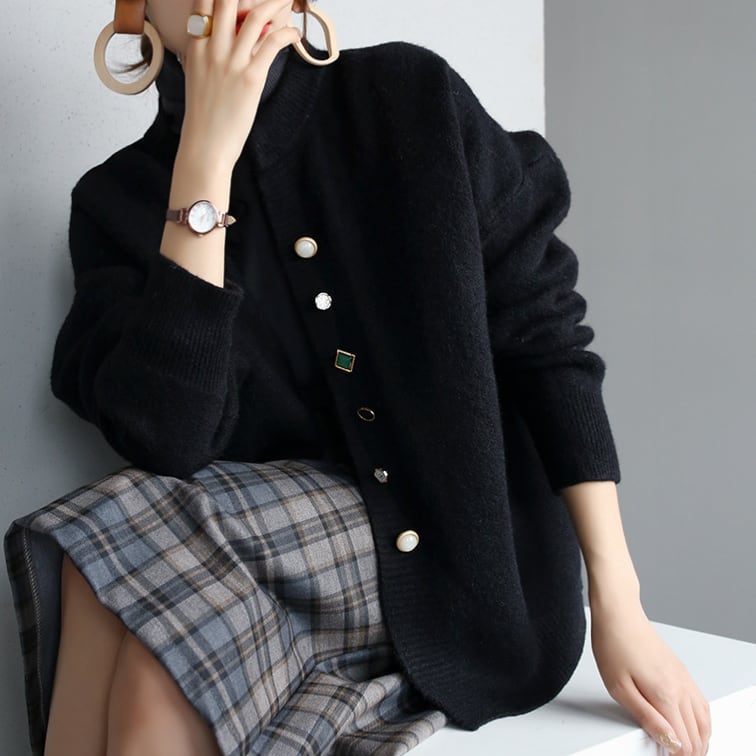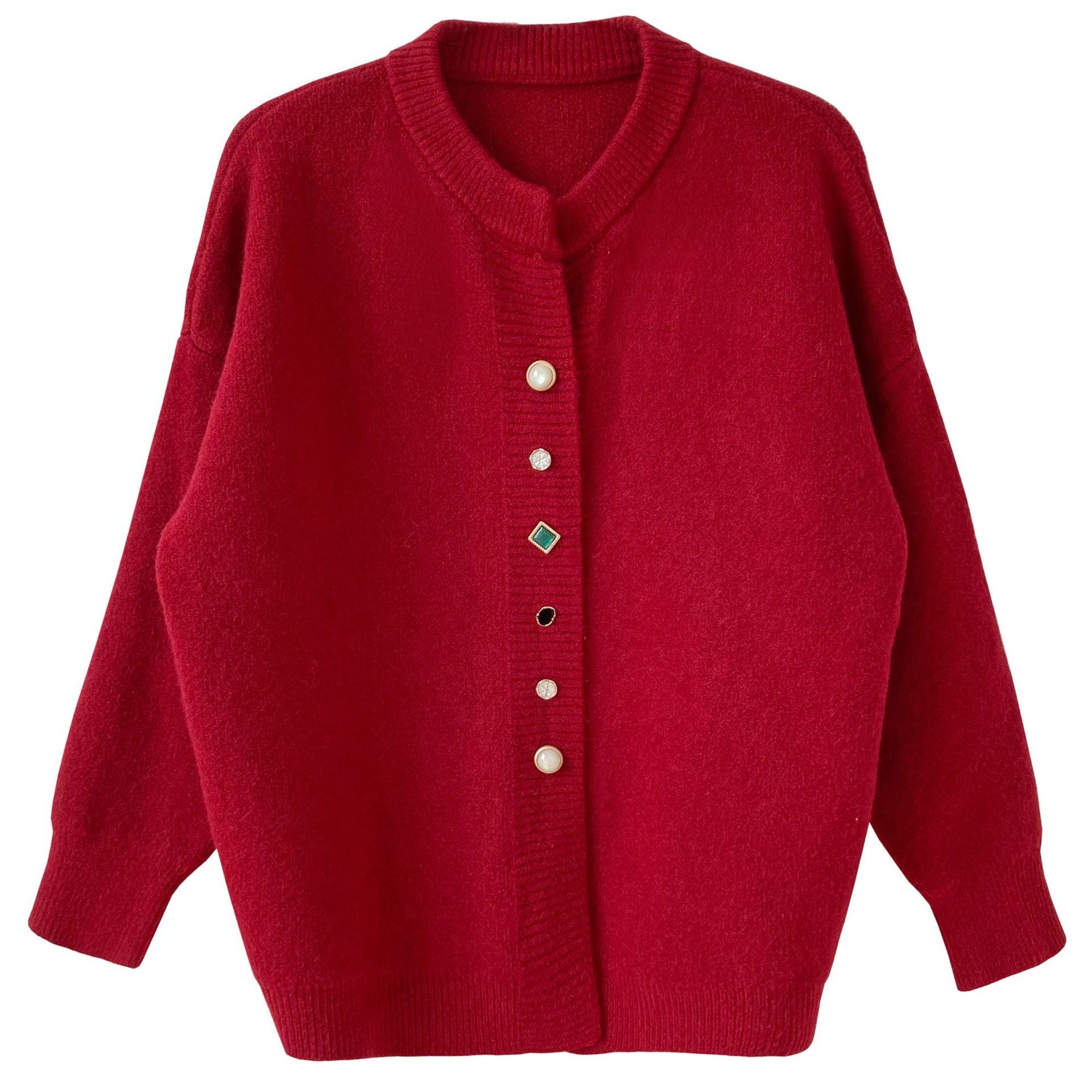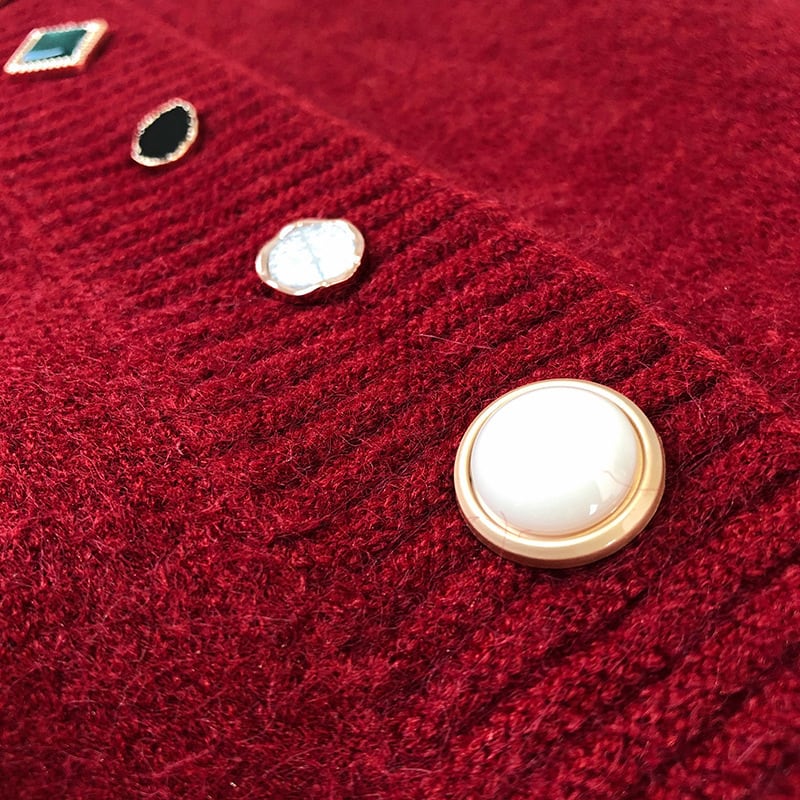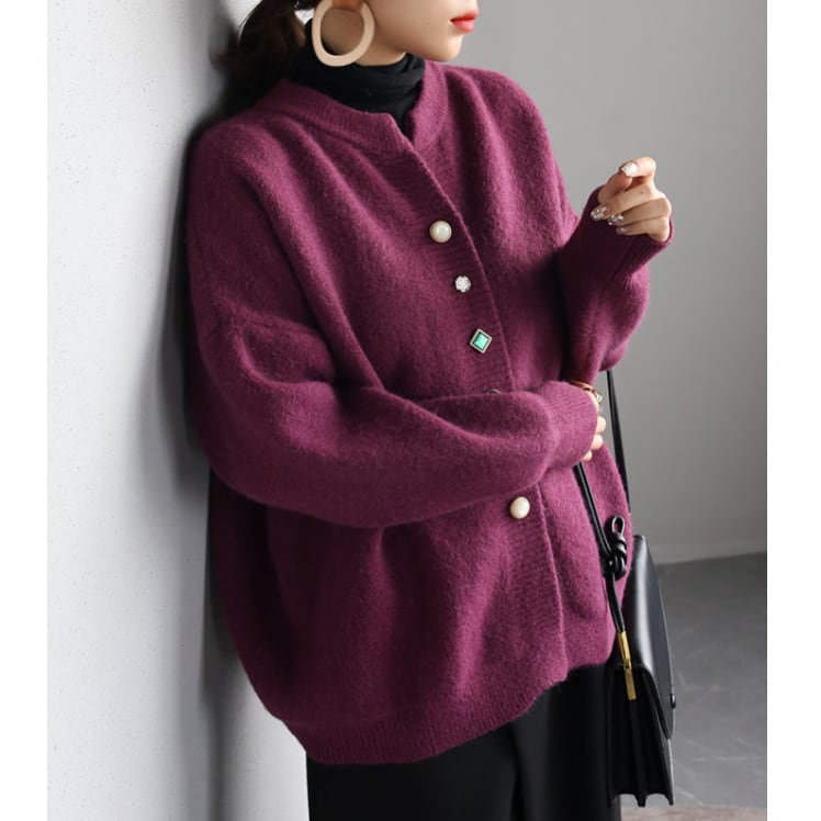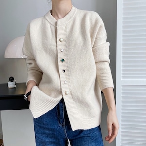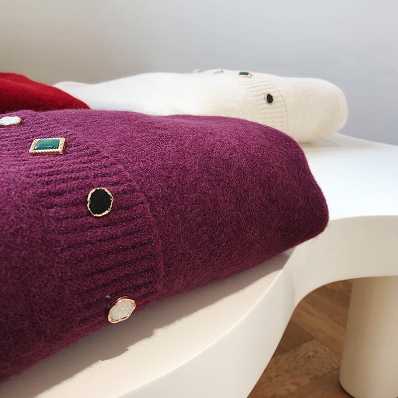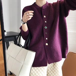個性のあるボタンデザインが印象的なニットカーディガン。