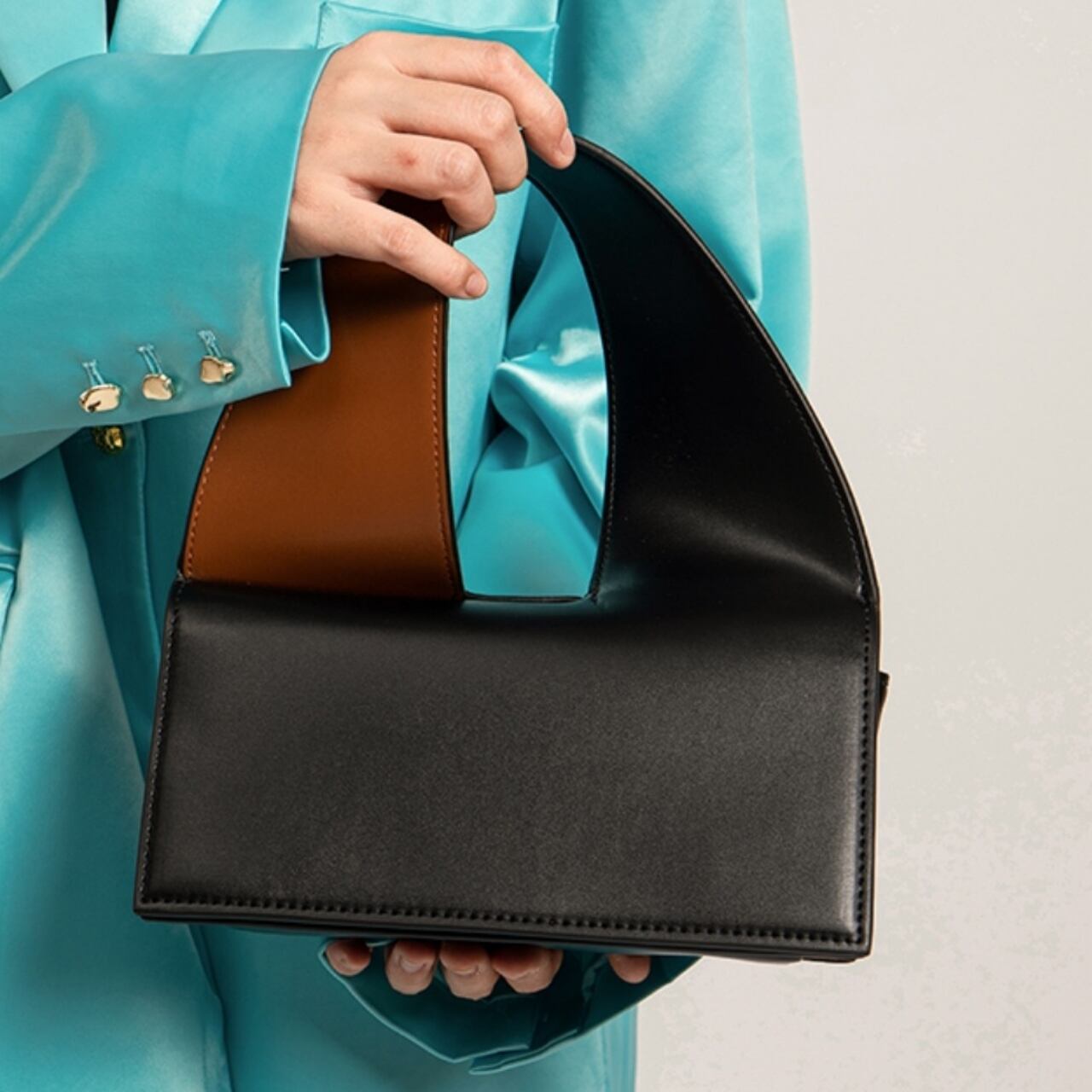 持ち手を捻ったデザインの一癖ショルダーバッグ。