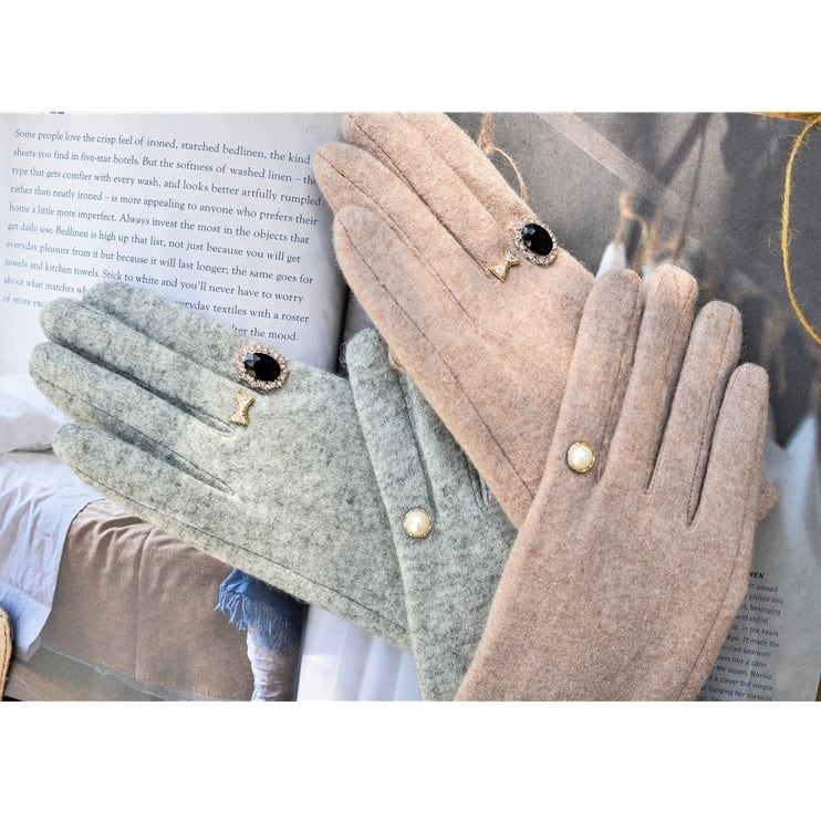 ジュエリーリングをつけているようなデザインのグローブ。 ウール混素材で暖かく、スクリーンタッチも可能。 【サイズ】 フリーサイズ 【カラー】 ・グレー+ブラックサファイア ・ブラック+ブラックサファイア ・バーガンディ+ブラックサファイア ・ベージュ+ブラックサファイア ・ブラック+ピンクジェムストーン ・グレー+ピンクジェムストーン ・バーガンディ+ピンクジェムストーン ・モカ+ピンクジェムストーン 【お届けについて】 当ショップはお客様の商品を1点1点検品・梱包をした後、海外からの直接発送となります。 そのため発送までにご決済から3週間前後のお時間を頂いております。 お時間にゆとりを持ってご購入頂くことをおすすめいたします。 ◼️注意事項 ・タイミングによっては商品在庫切れにより注文キャンセルとさせていただく恐れもございますので、予めご了承くださいませ。 ・こちらは輸入品となります。日本製とは検品基準が異なる為、新品未使用品でもごくわずかな汚れやほつれがある場合もございます。 ・仕入れ工場を変えることがあるため、記載サイズと若干異なる場合がございます。 ・商品の色味は、お手持ちのスマートフォンの画面によって実物と若干異なる場合がございます。 ・イメージ違いやサイズ交換等、お客さまご都合による交換、返品は対応出来かねます。 ———————————— ご購入前にこちらをお読みください → https://www.alliede.shop/about ————————————